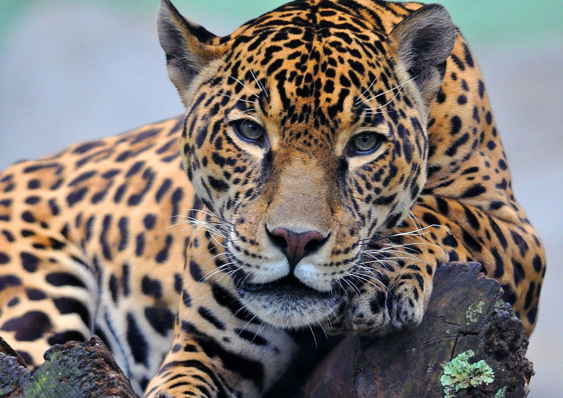 Un leopardo Mira en un marco acostado en un tronco