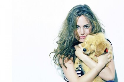Retrato de una niña con un lindo cachorro