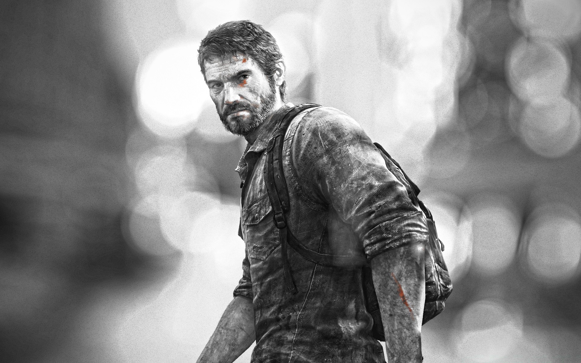 Foto en blanco y negro de un hombre adulto en el fondo de una valla
