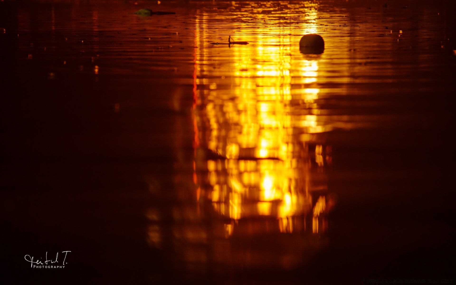 La tranquilidad de la puesta de sol sobre el agua. Mar en la oscuridad
