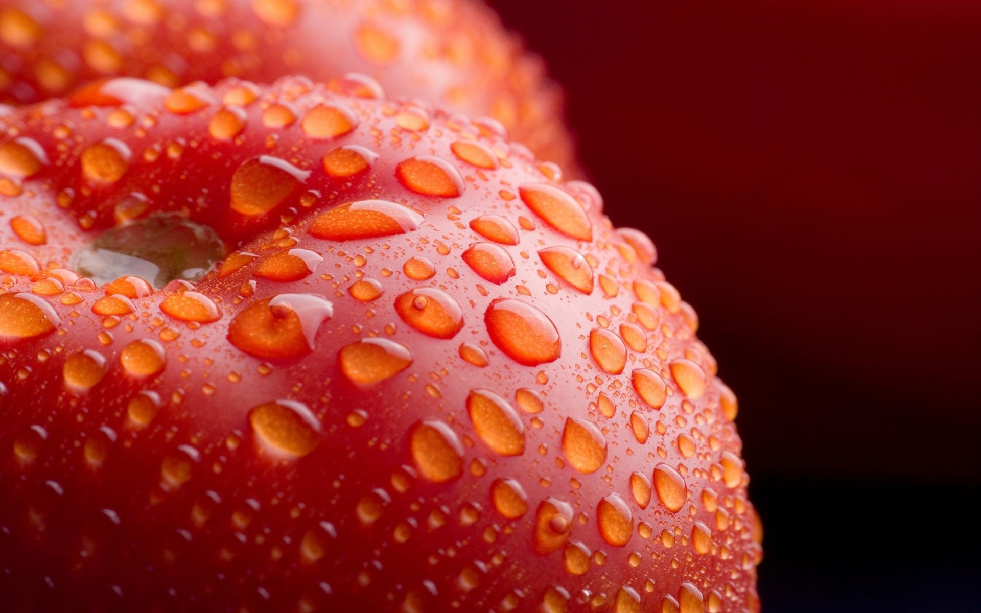 Imagen ampliada de una gota de agua en la fruta
