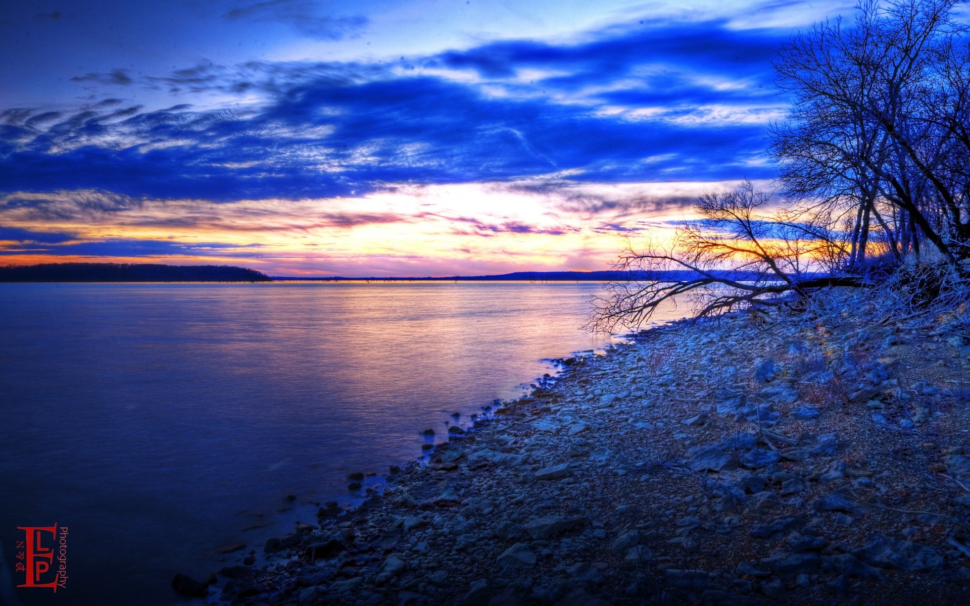 Hermosa puesta de sol junto al río