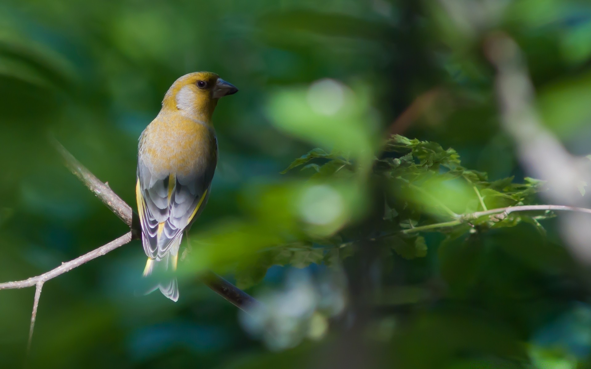 Pájaro amarillo en una rama de árbol