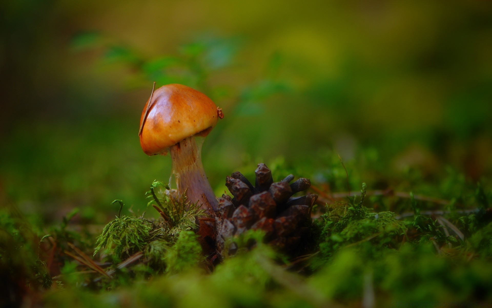 Fotografía macro de otoño de un pequeño hongo borovik