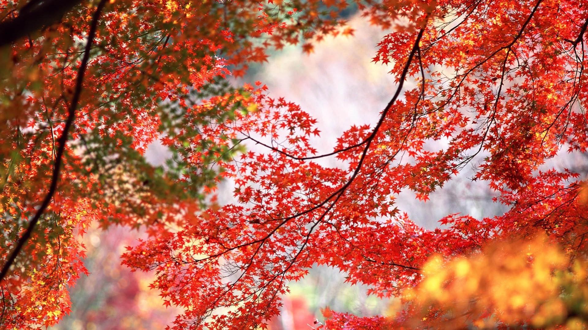 Hermoso otoño con hojas rojas