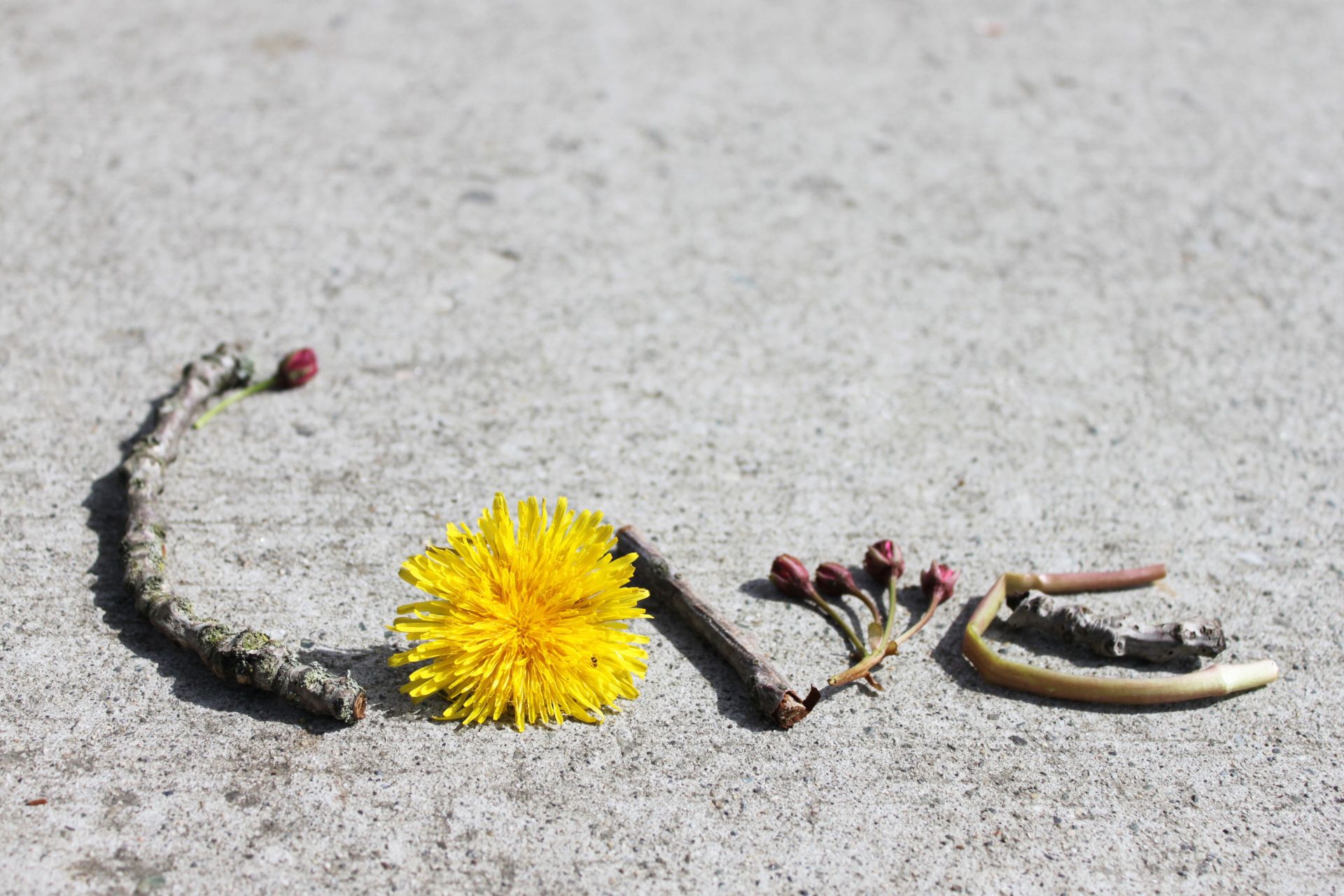 La inscripción love de materiales improvisados en la arenaLa inscripción love de materiales improvisados en la arena