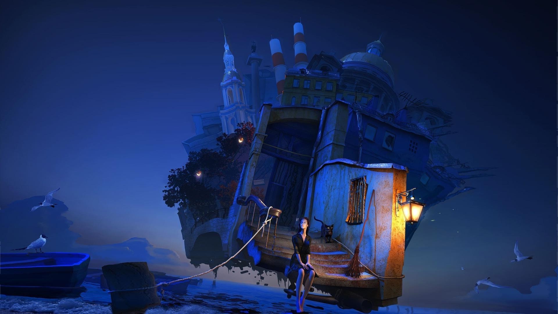 Ilustración de anime de chicas y pájaros