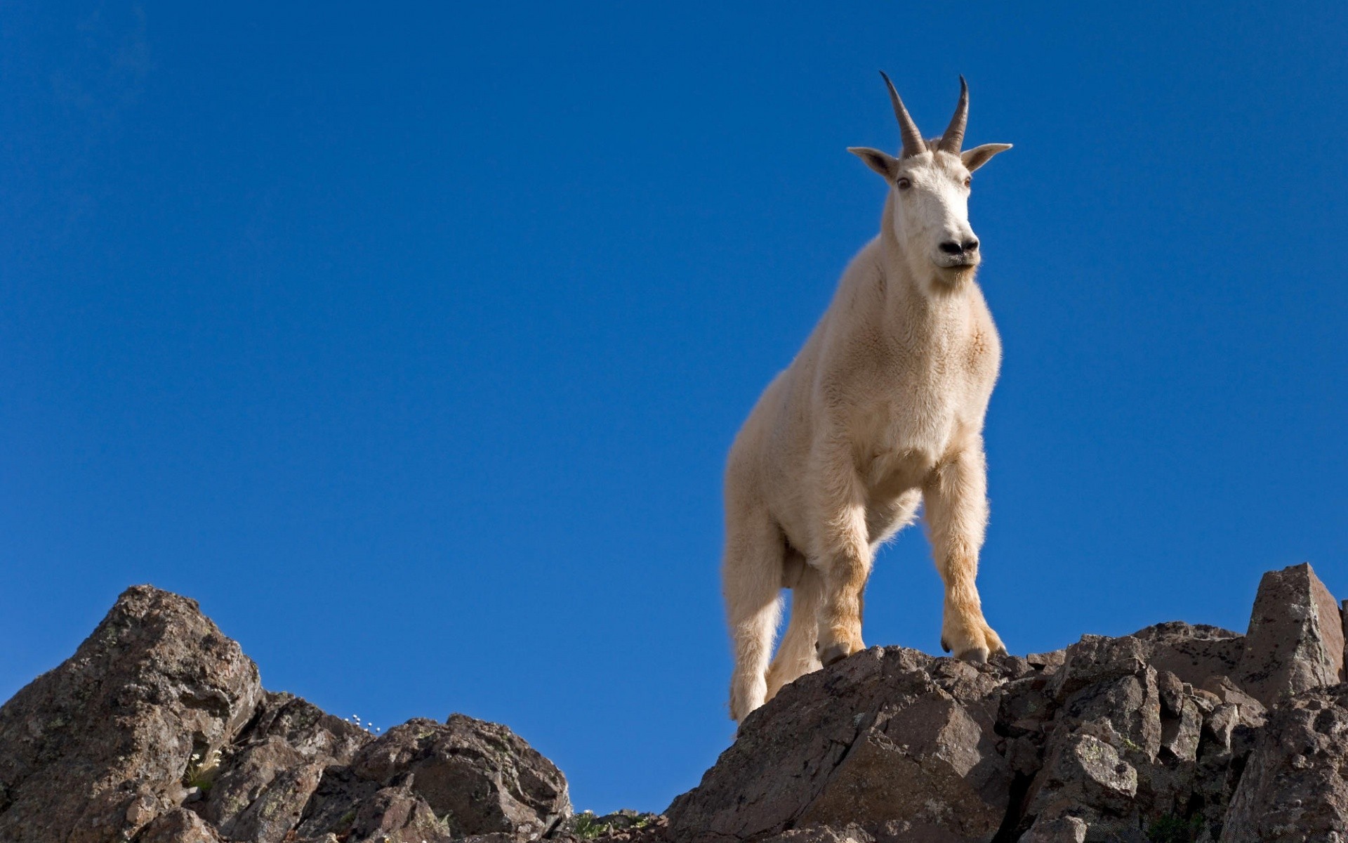 Animal con cuernos en la cima de la montaña