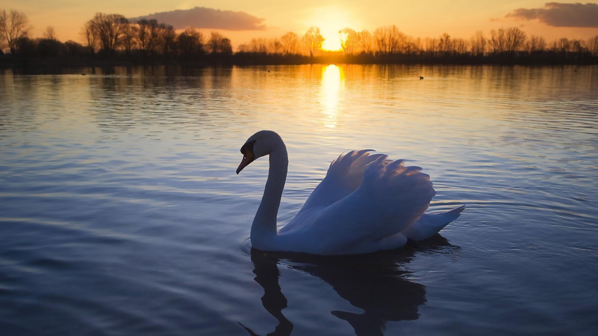 Cisne en el lago al atardecer
