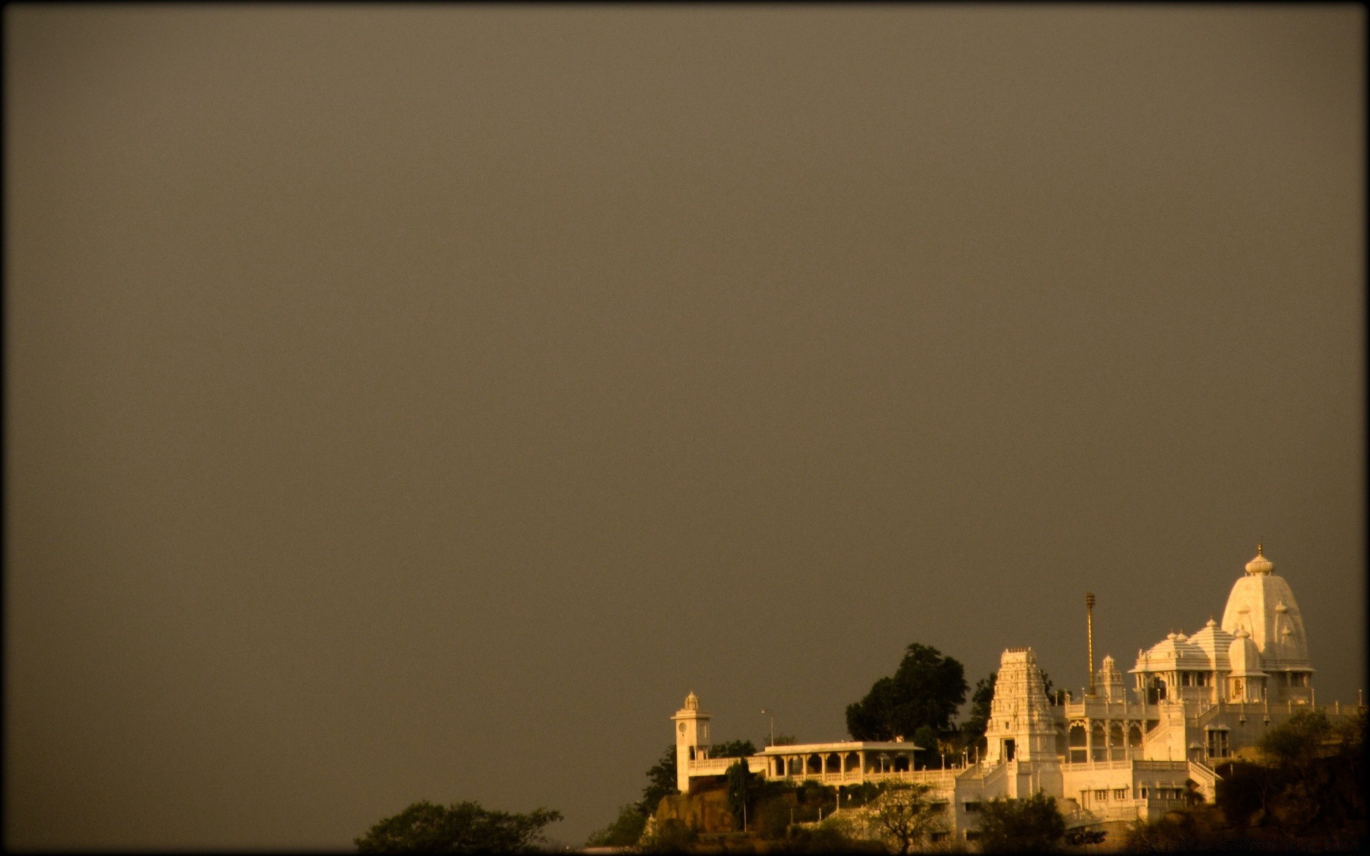 Fantasía. Amanecer. Montaña. Esfera en el cielo