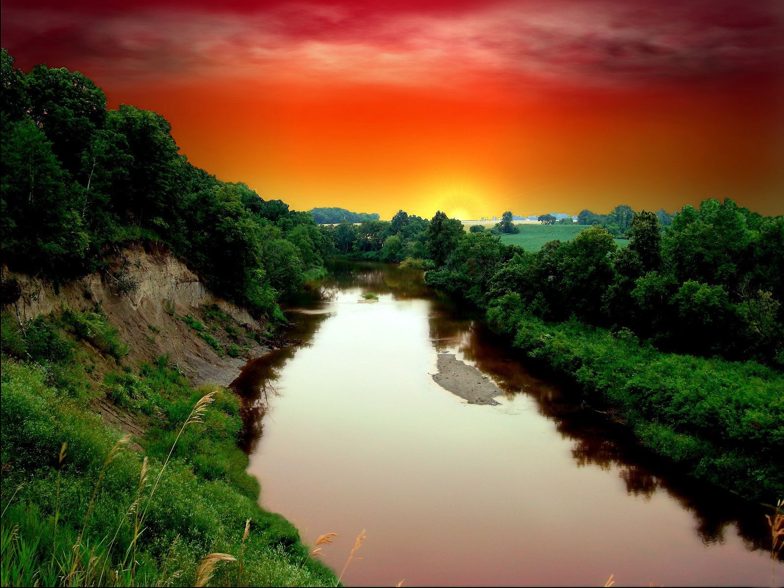 Amanecer junto al agua en la naturaleza temprano en la mañanaAmanecer junto al agua en la naturaleza temprano en la mañana