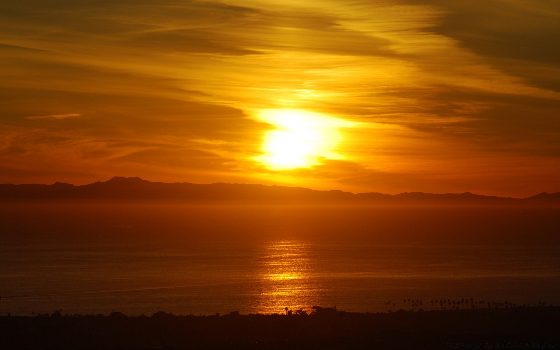 Puesta de sol roja sangrienta sobre las copas de los árboles