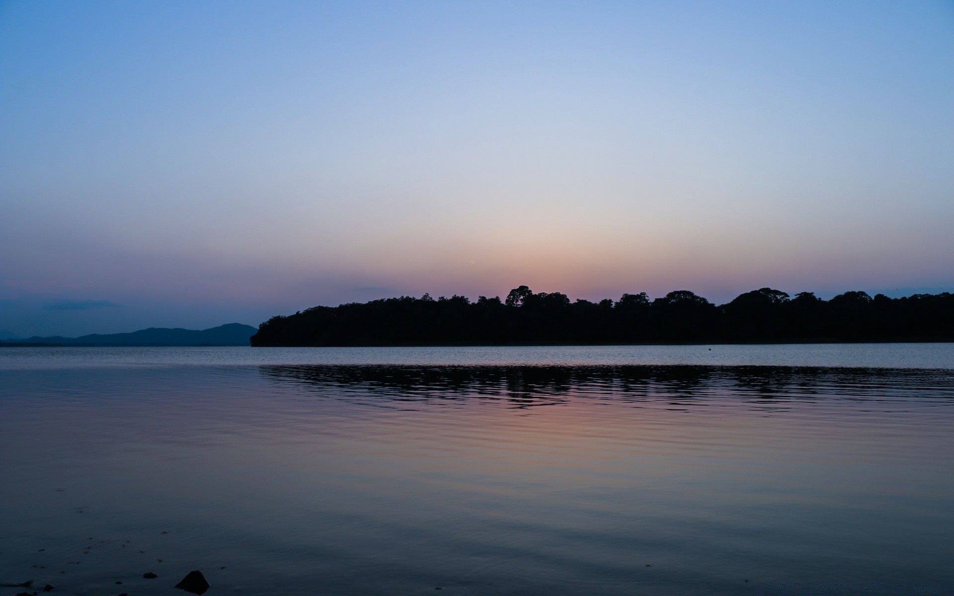 Lago y montañas en el fondo de una hermosa puesta de solLago y montañas en el fondo de una hermosa puesta de sol