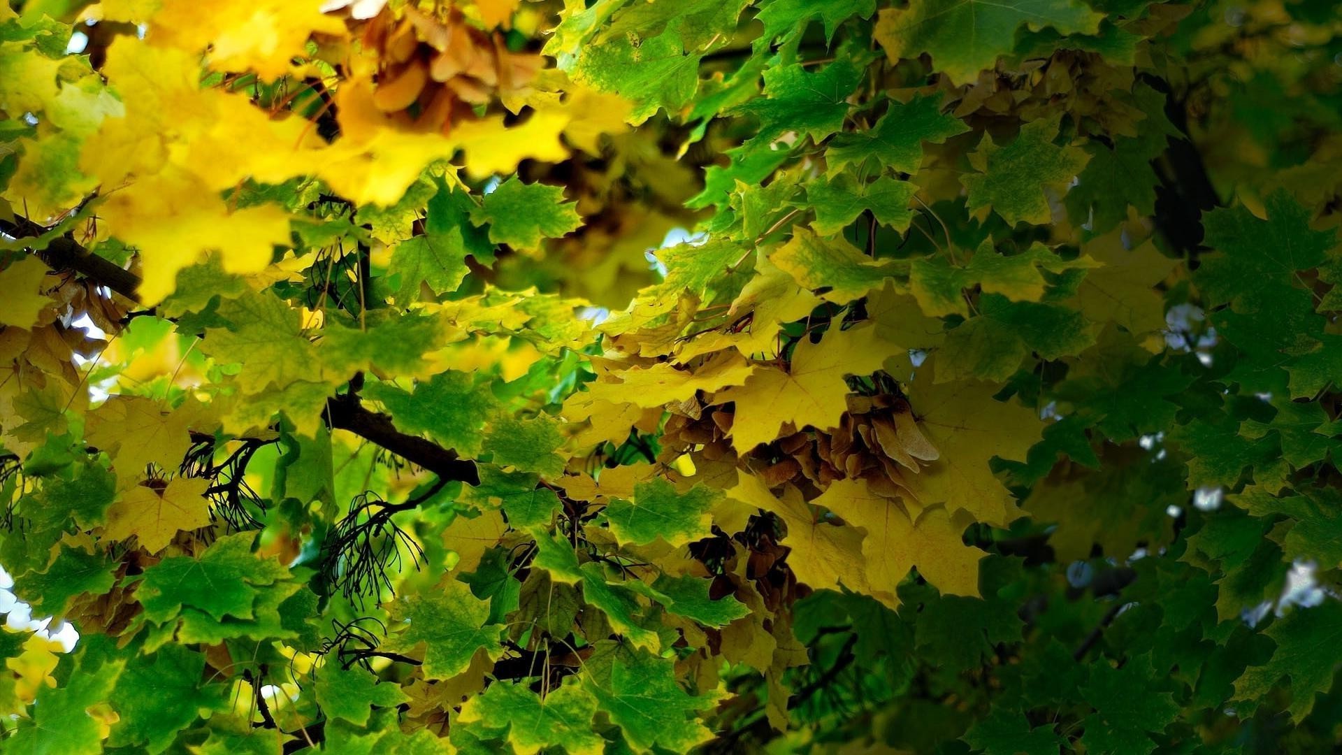 Una mirada al cielo a través de una cuadrícula de hojas de arce