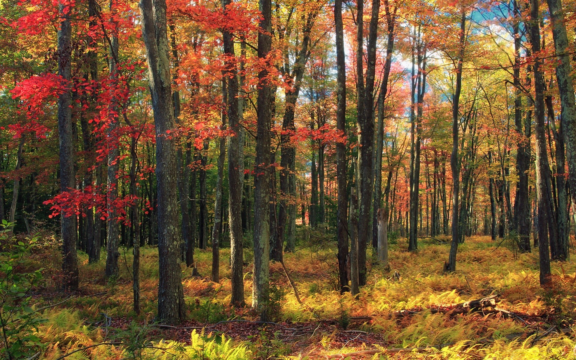 Camino en el bosque salpicado de coloridas hojas de otoño