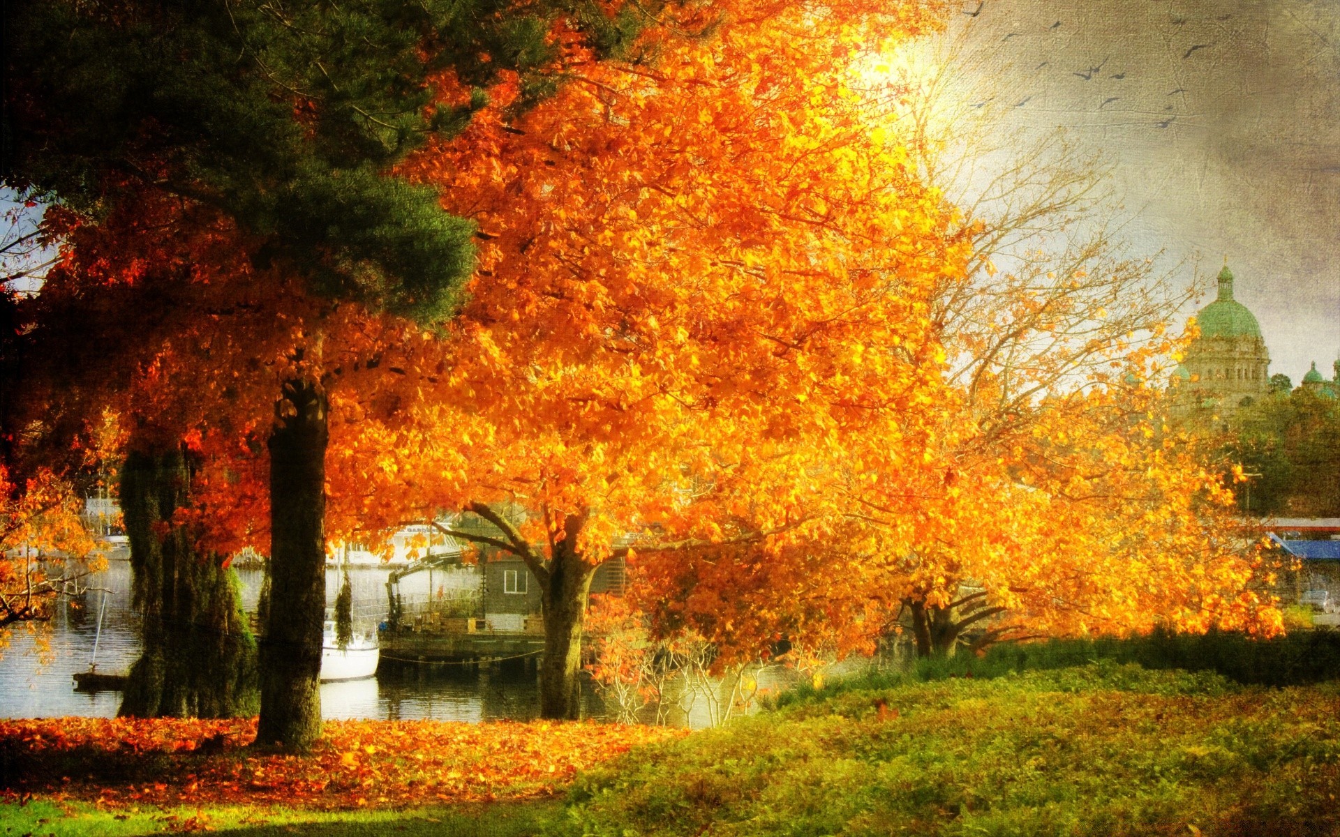 Paisaje de otoño y sol brillante