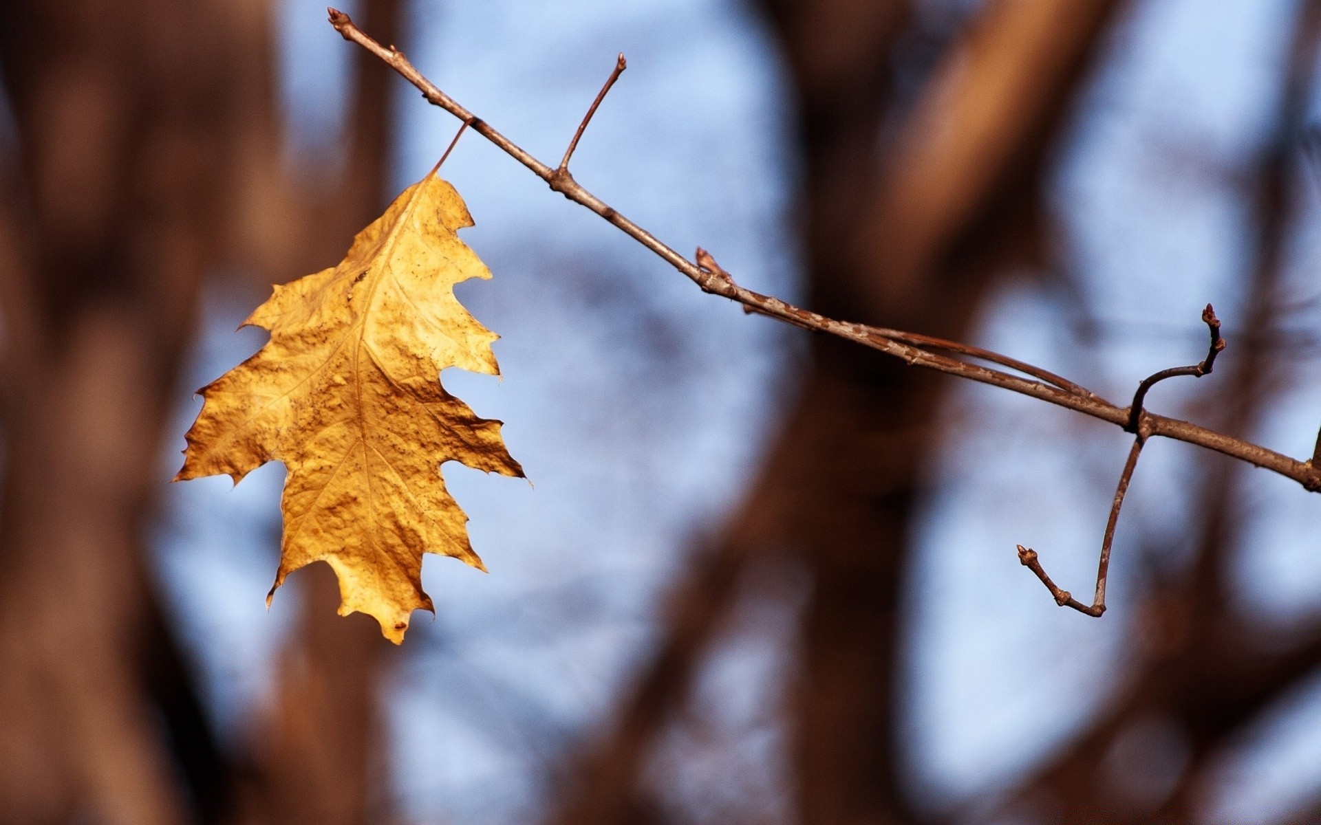 Otoño; un hombre monta una bicicleta, una hoja de otoño roció el camino