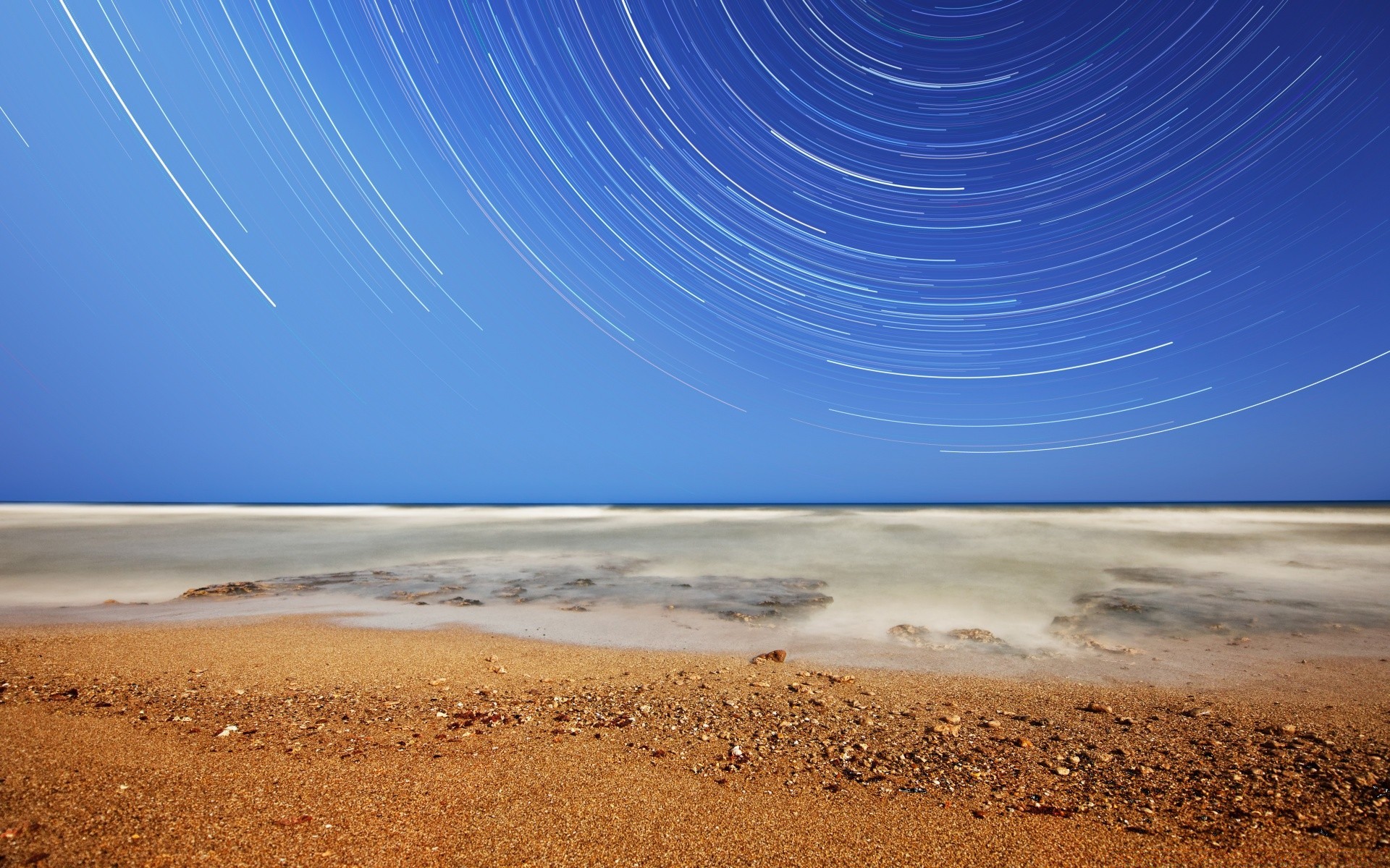 Puesta de sol sobre una playa tropical, las olas del mar ligero se precipitan sobre la arenaPuesta de sol sobre una playa tropical, las olas del mar ligero se precipitan sobre la arena