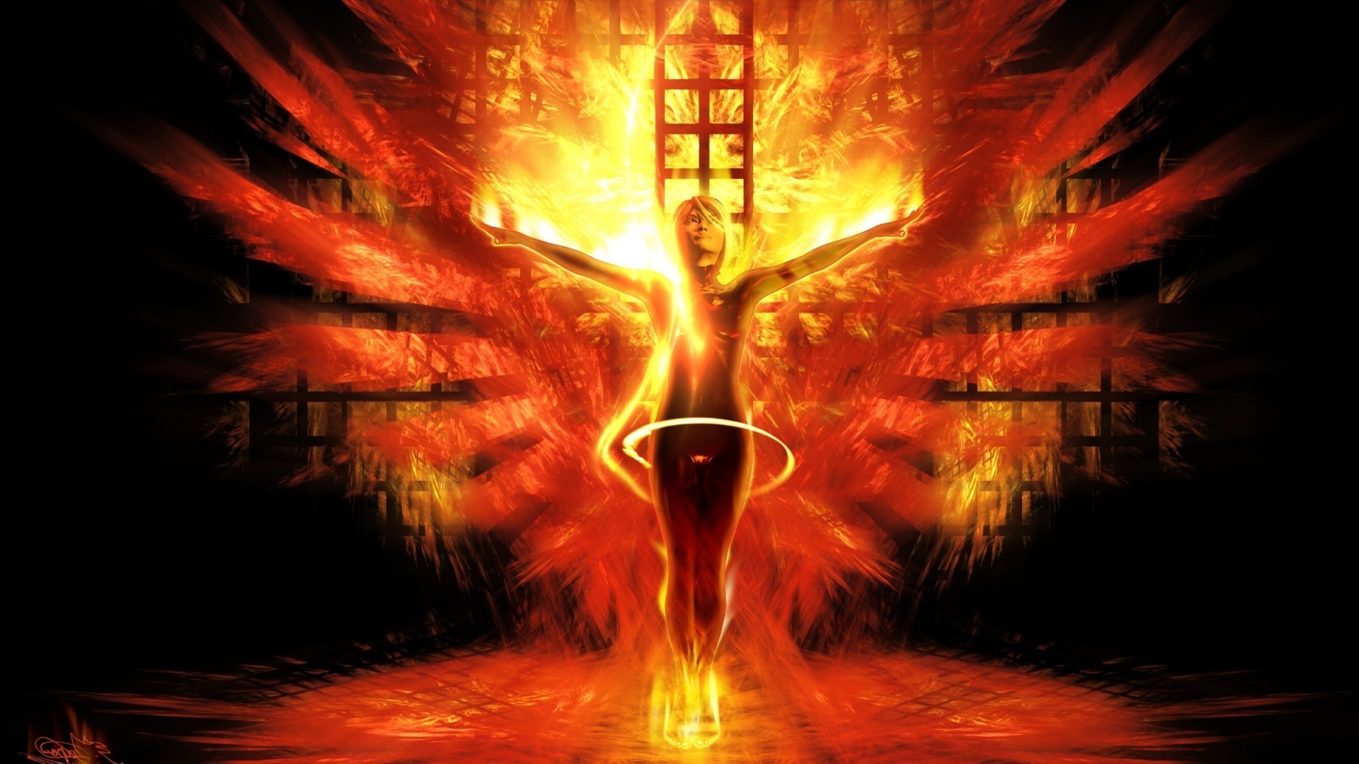 Chica Arquera en los elementos de fuego y agua