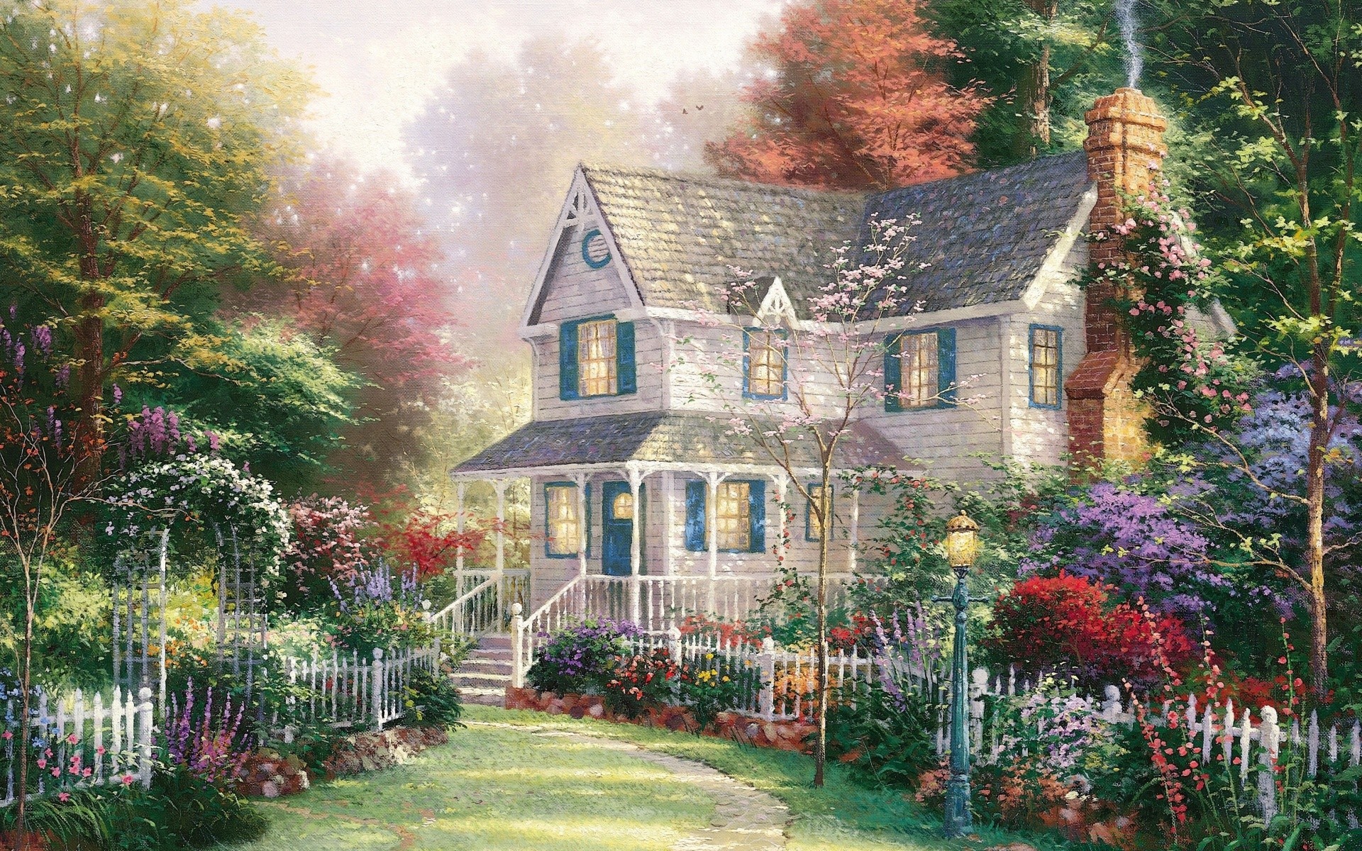 Hermoso dibujo de arquitectura con Jardín y bosque