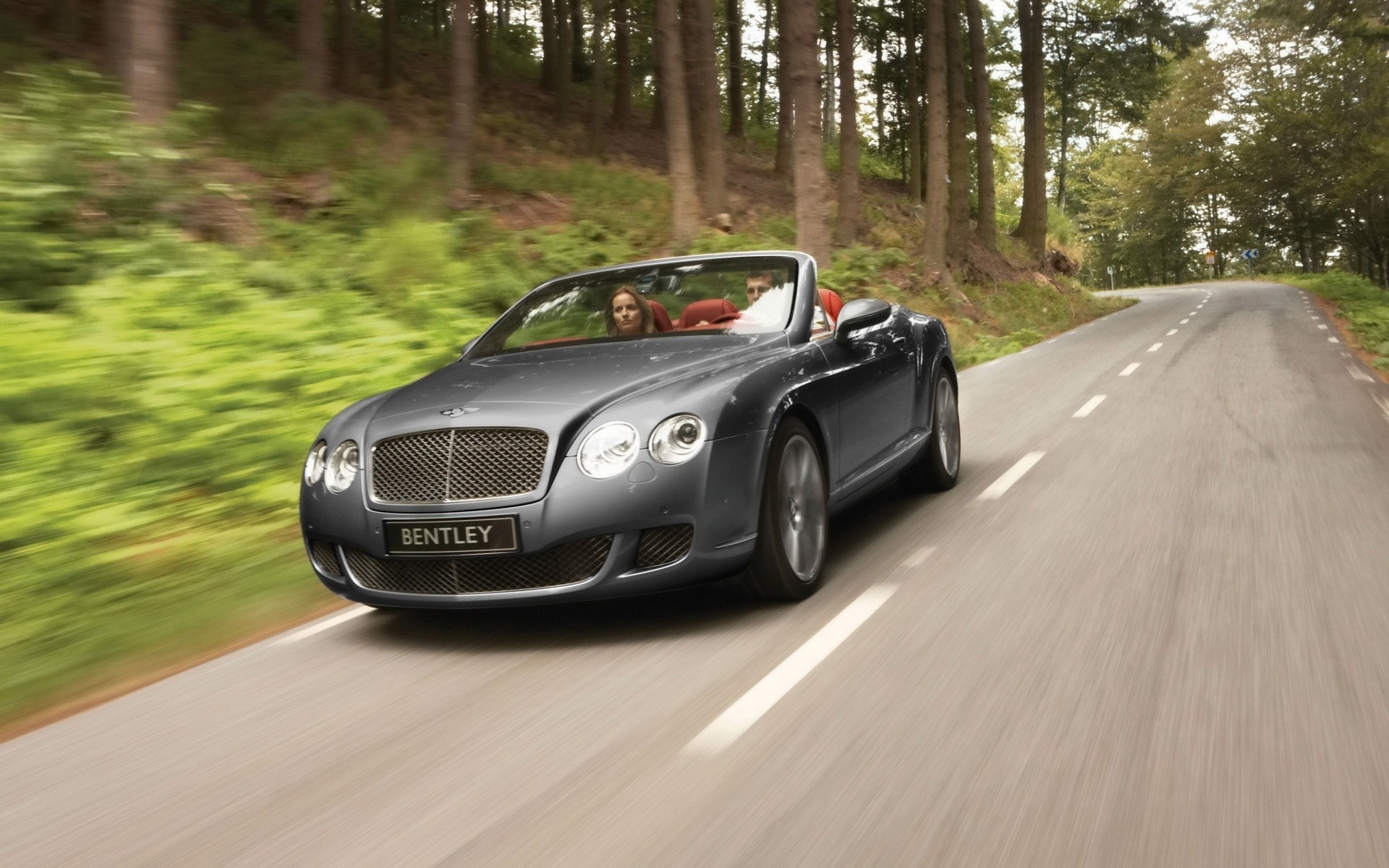 Coche en la carretera en el bosque. Bentley en el asfalto