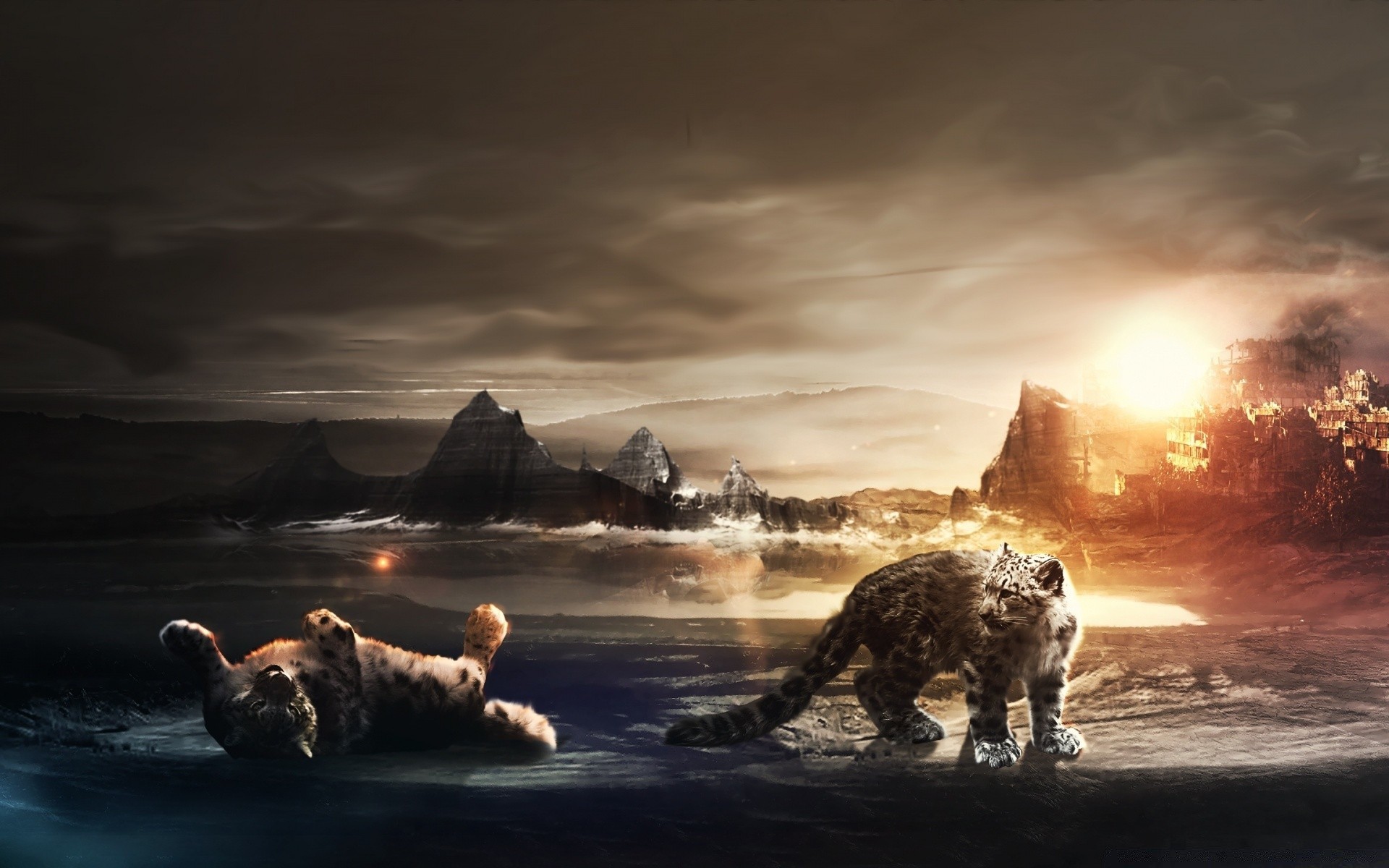 Imagen de la película "Godzilla". Godzilla en la ciudad al atardecer