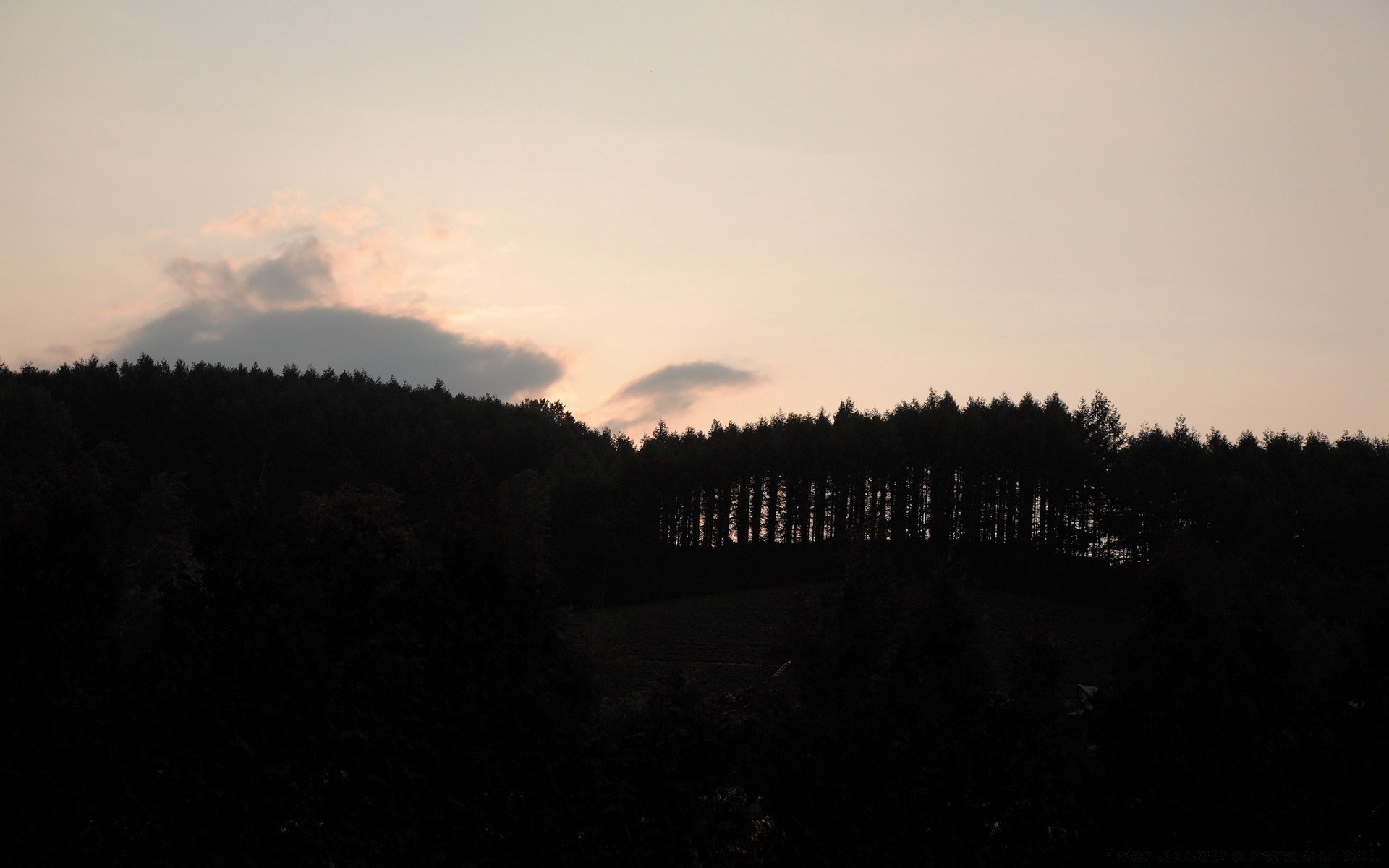 Rocas cubiertas de hierba en forma de islotes al atardecer