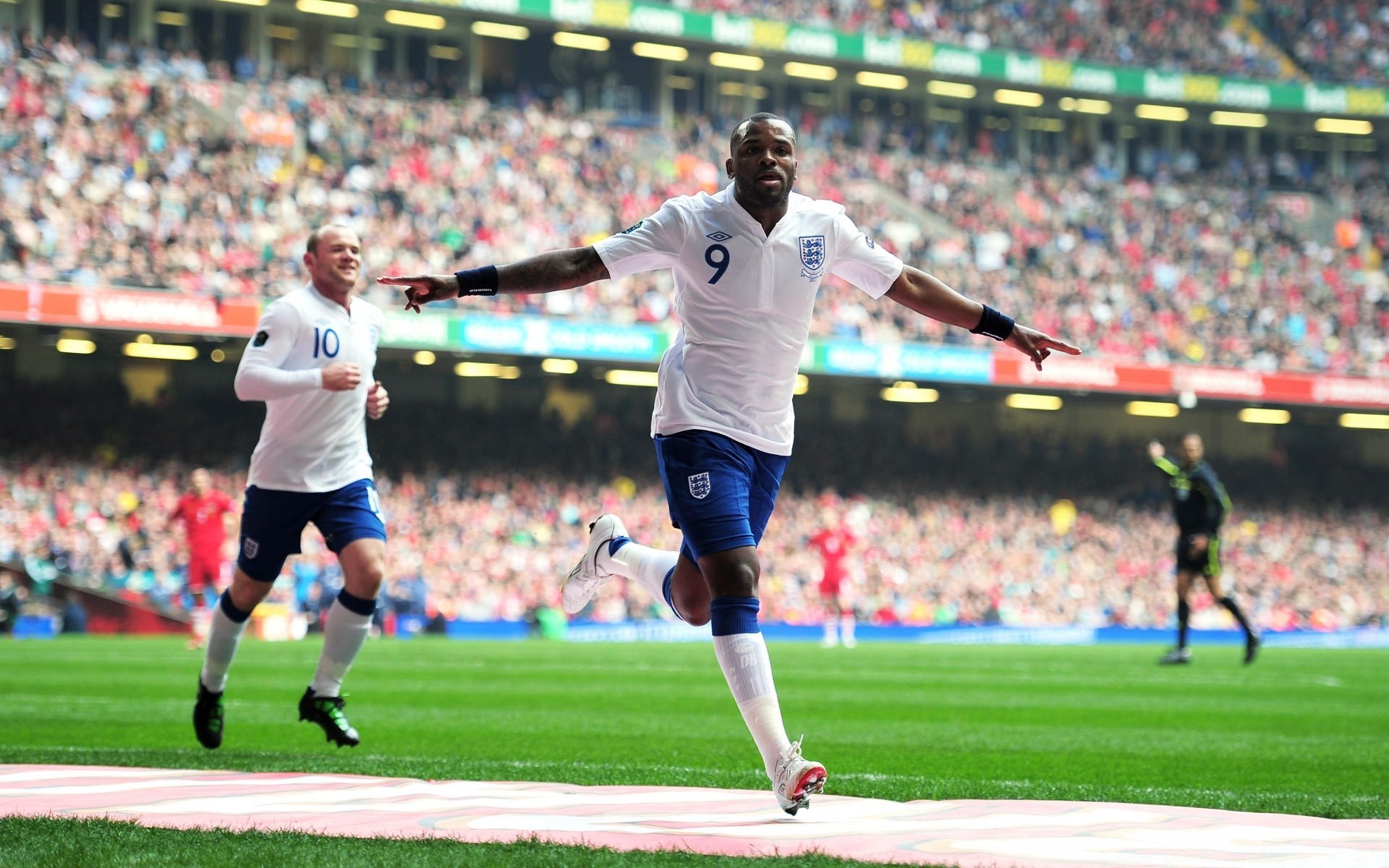 El futbolista que marcó el gol en el uniforme rojo azul se regocija de rodillas