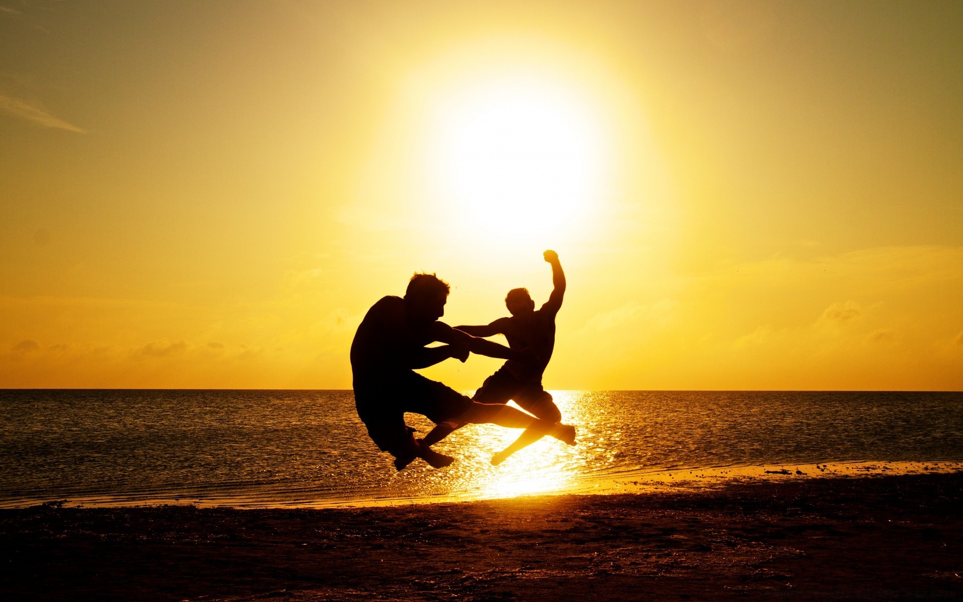 Dos atletas saltando en la playa