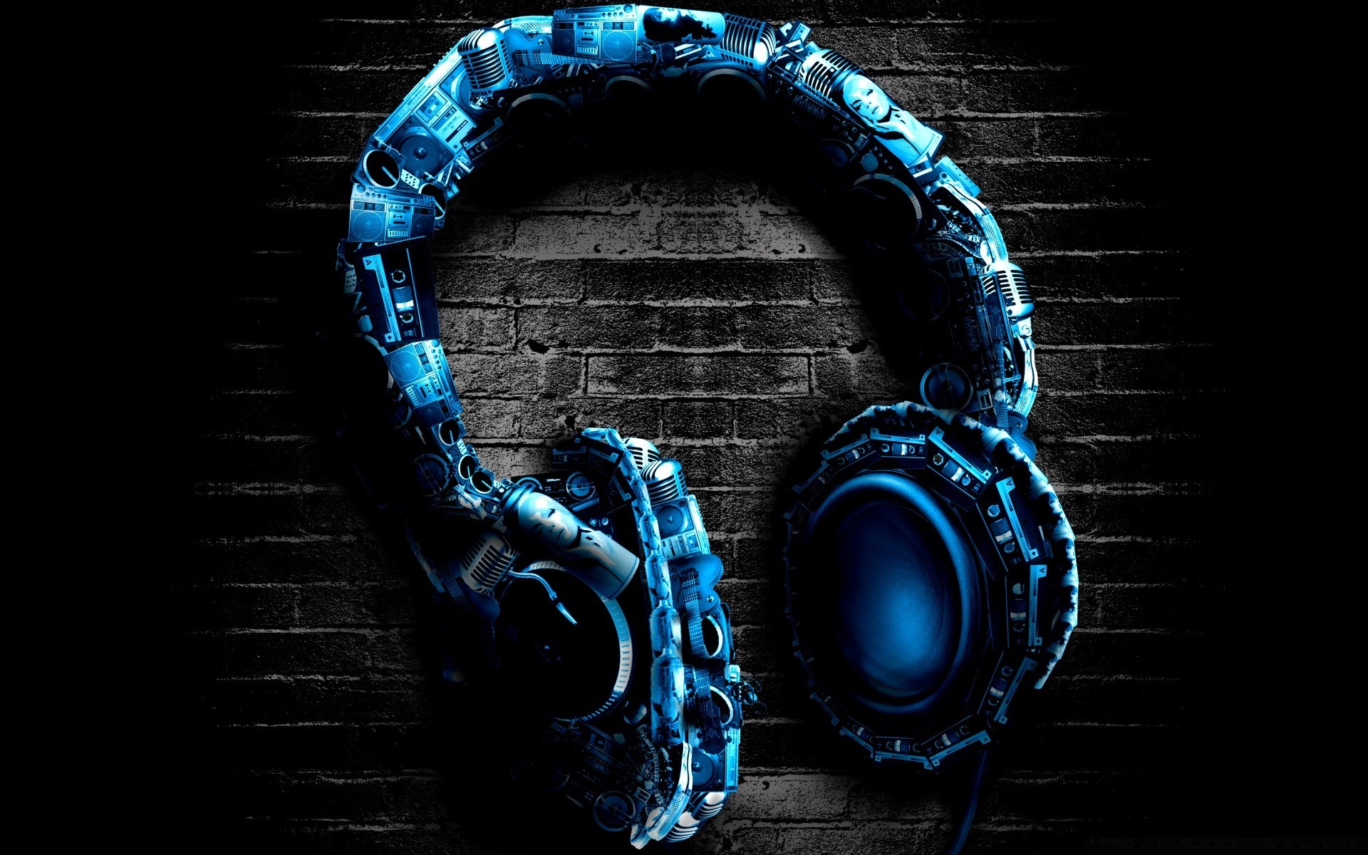 Auriculares de neón en el fondo de la pared de ladrillo electrodomésticos