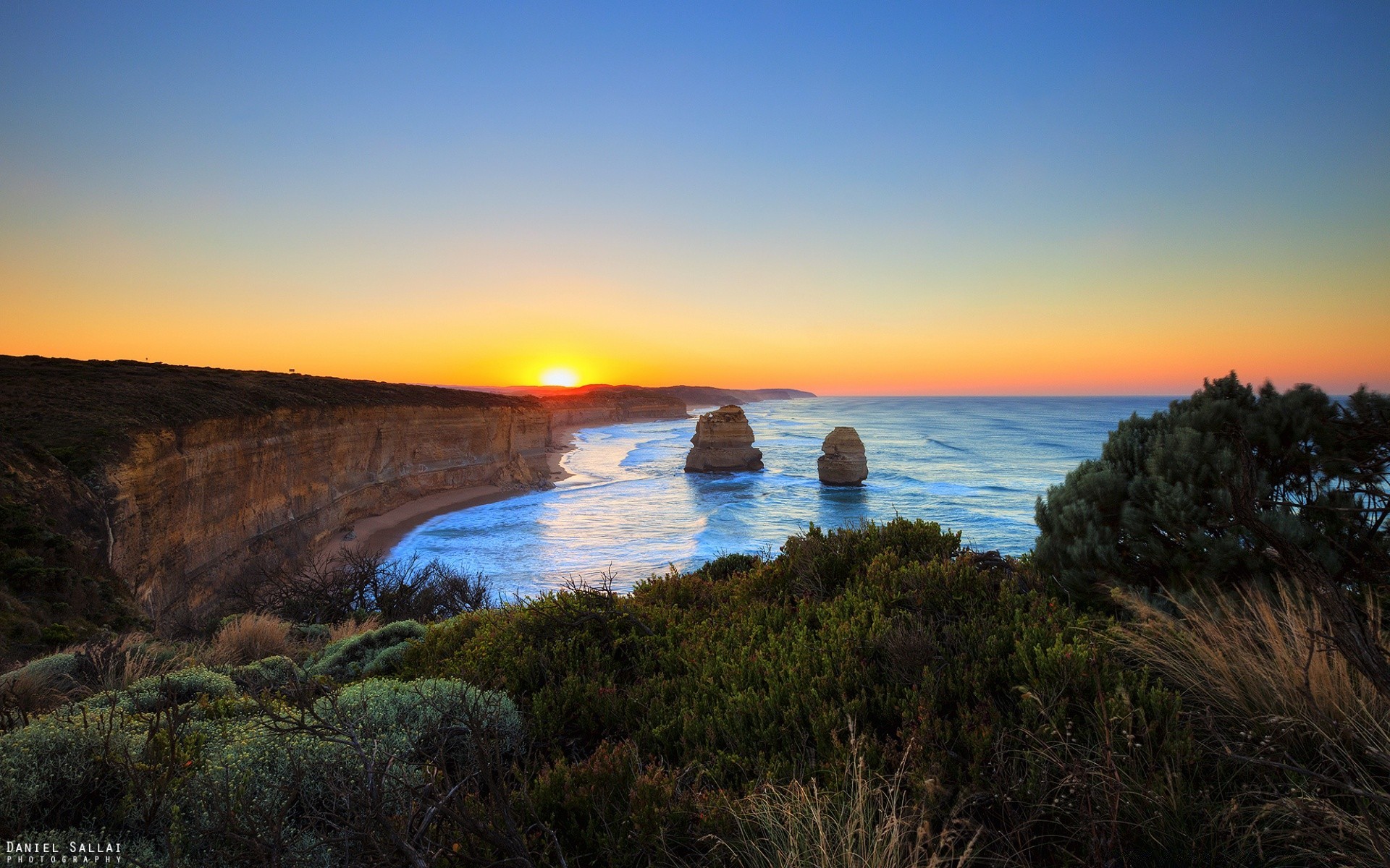 Hermosa costa rocosa y neblina de niebla en la distancia