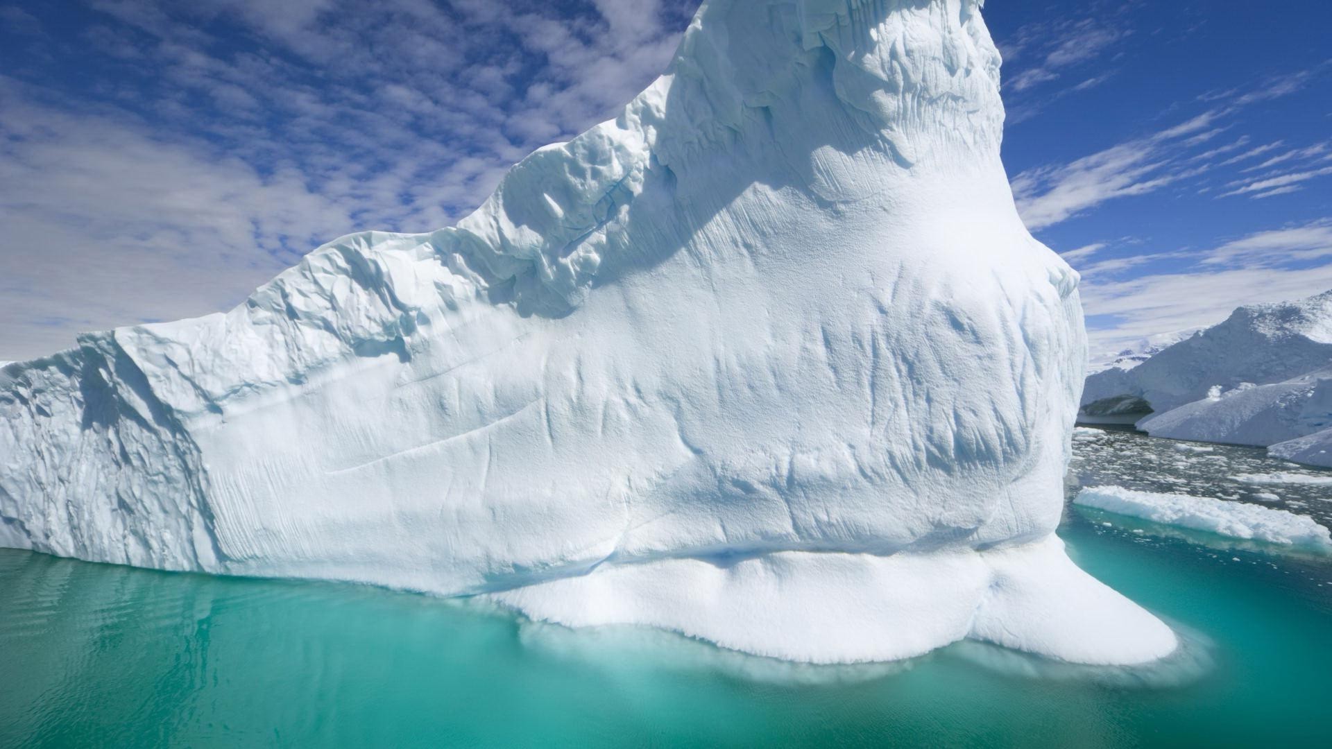 Helicóptero amarillo-negro en la nieve en el fondo de las montañas