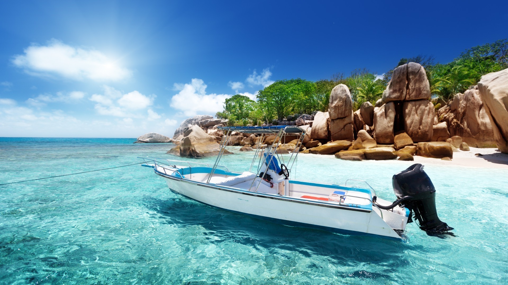 Mar azul. Yate en el agua