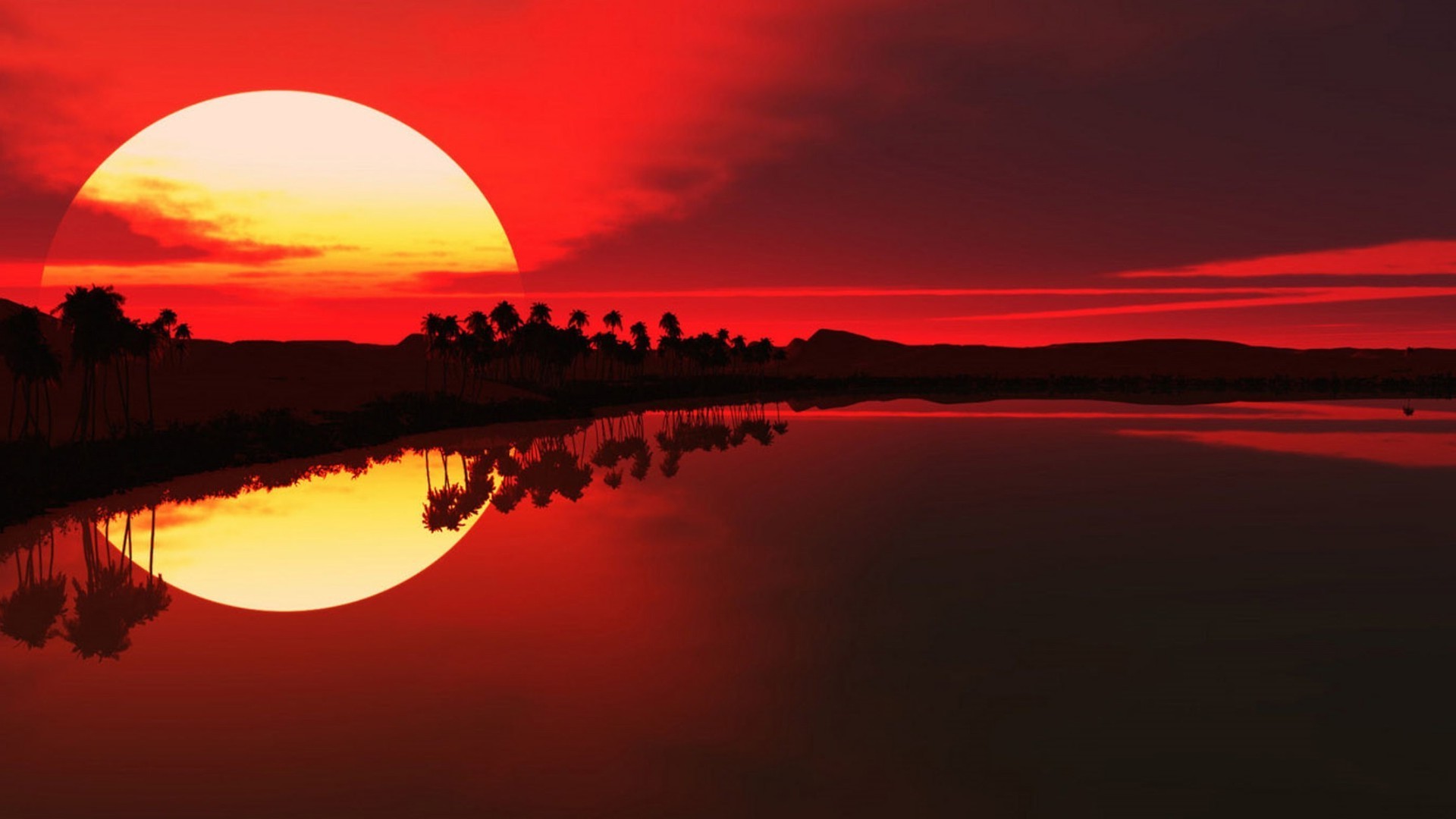 Hermosa puesta de sol con el reflejo del sol en el agua