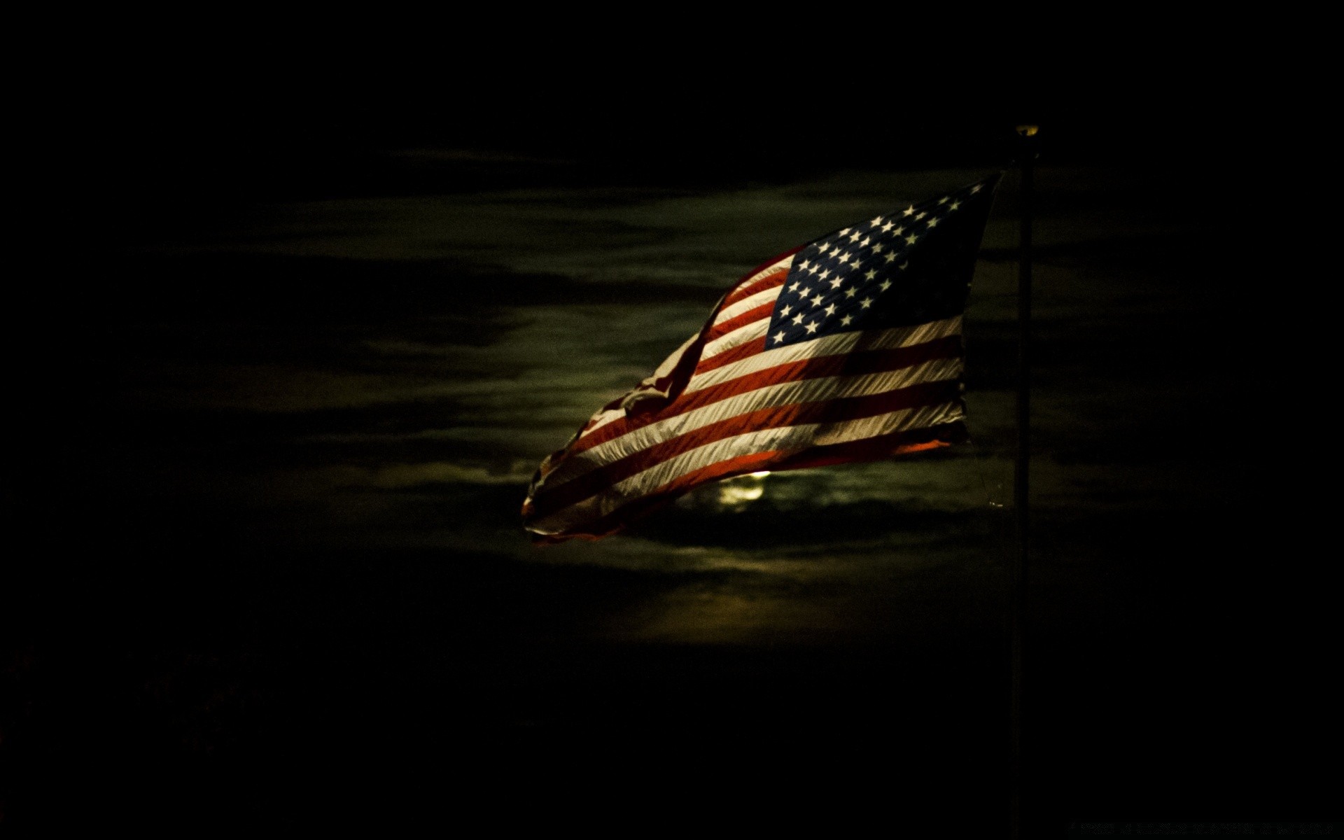 Bandera americana iluminada por la Luna llena
