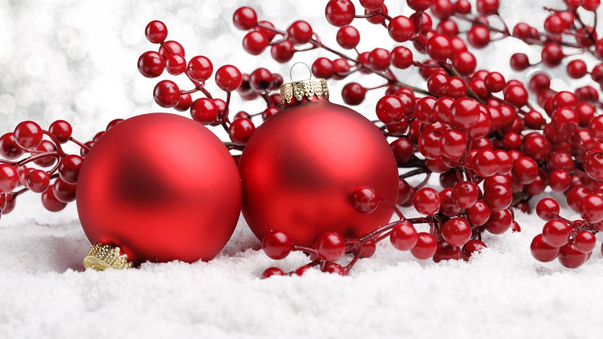 Bolas rojas de Navidad en el fondo de bayas rojas
