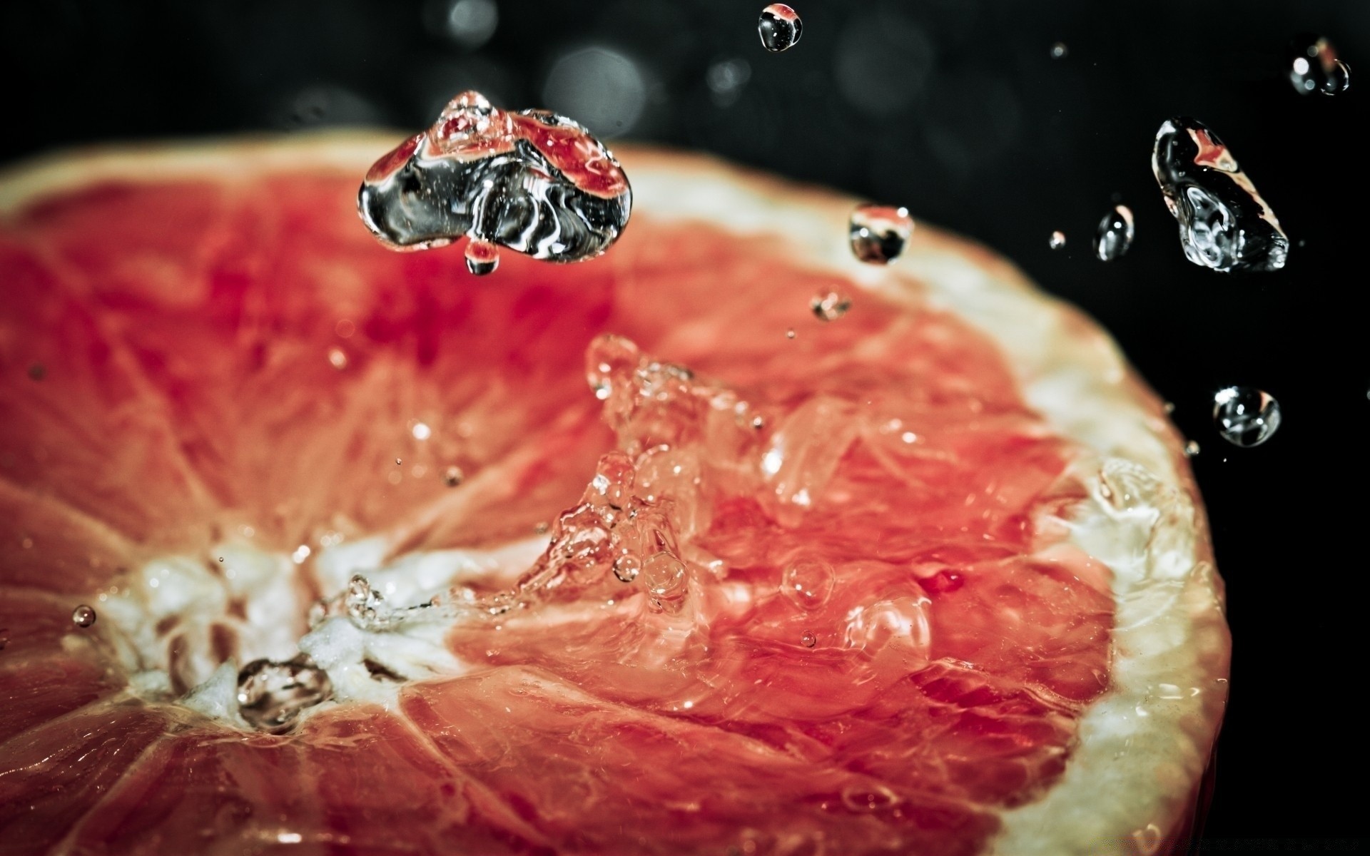 Fotografía macro de gotas abrasadoras en una fruta cortada
