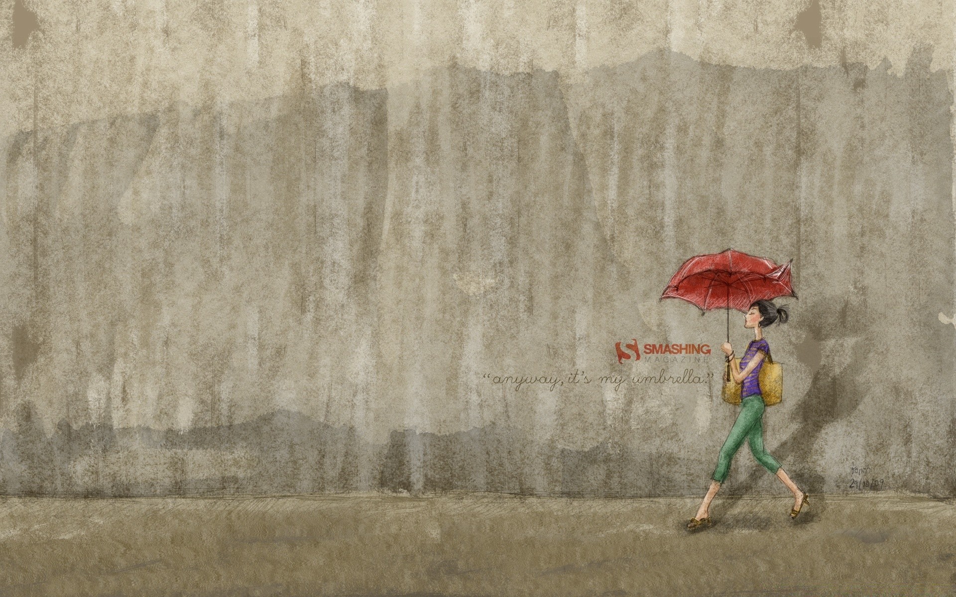 Imagen Vintage en blanco y negro de una chica con un paraguas rojo