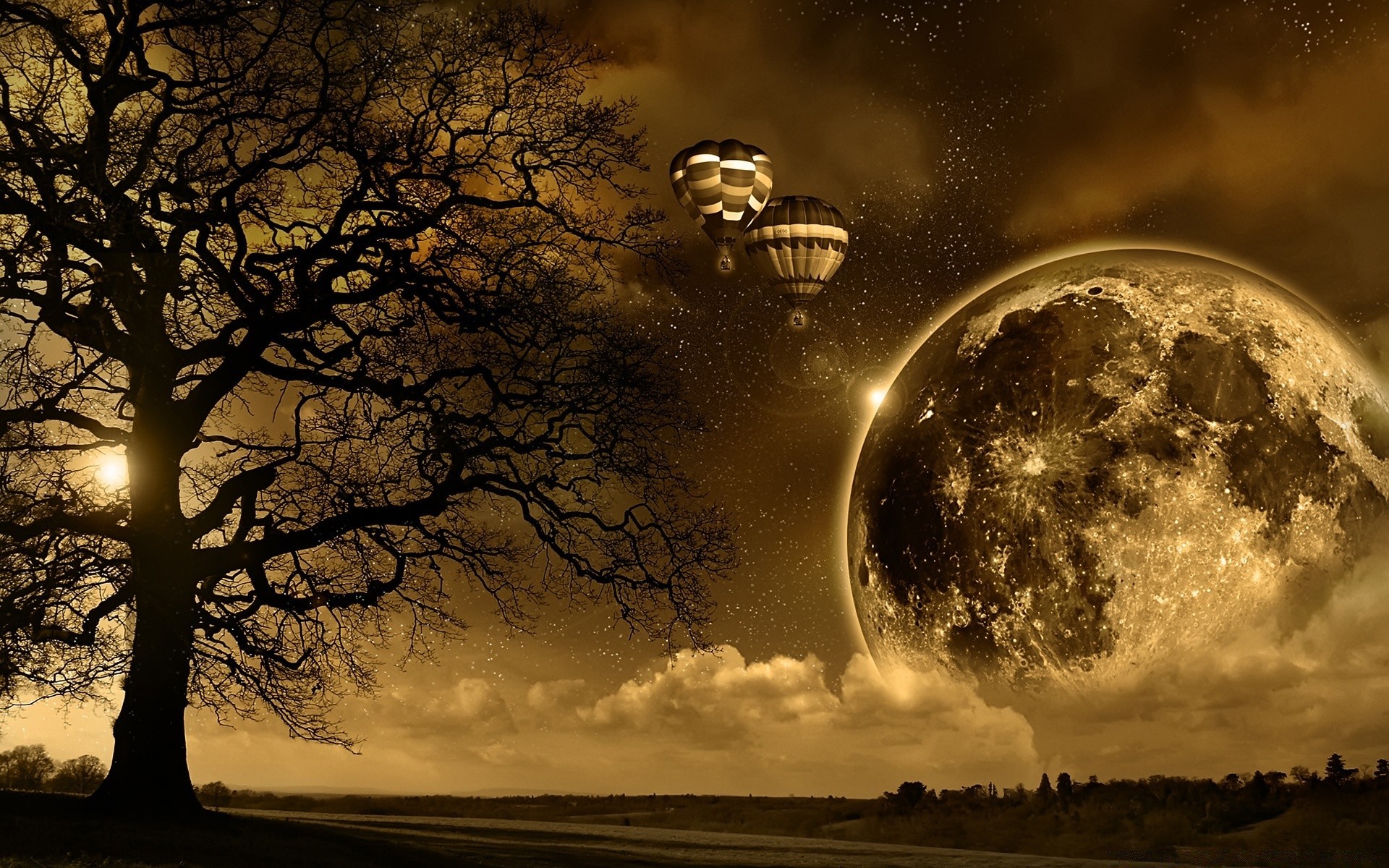 La gran Luna amarilla y el árbol