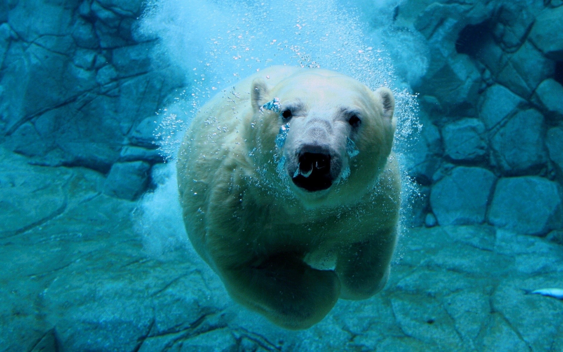 Un oso polar nadando bajo el agua