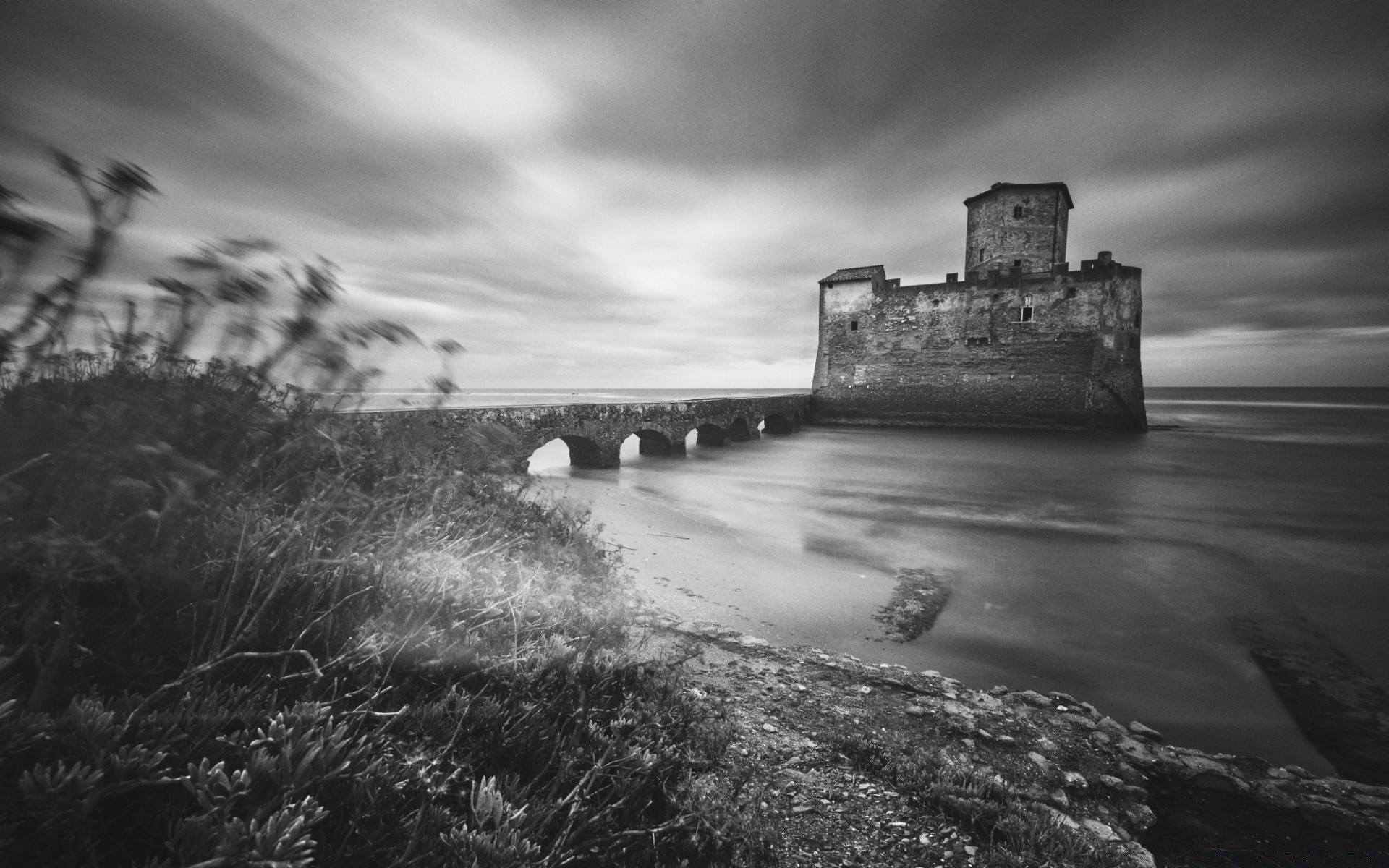 Fotografía en blanco y negro de un depredador con los brazos separadosFotografía en blanco y negro de un depredador con los brazos separados