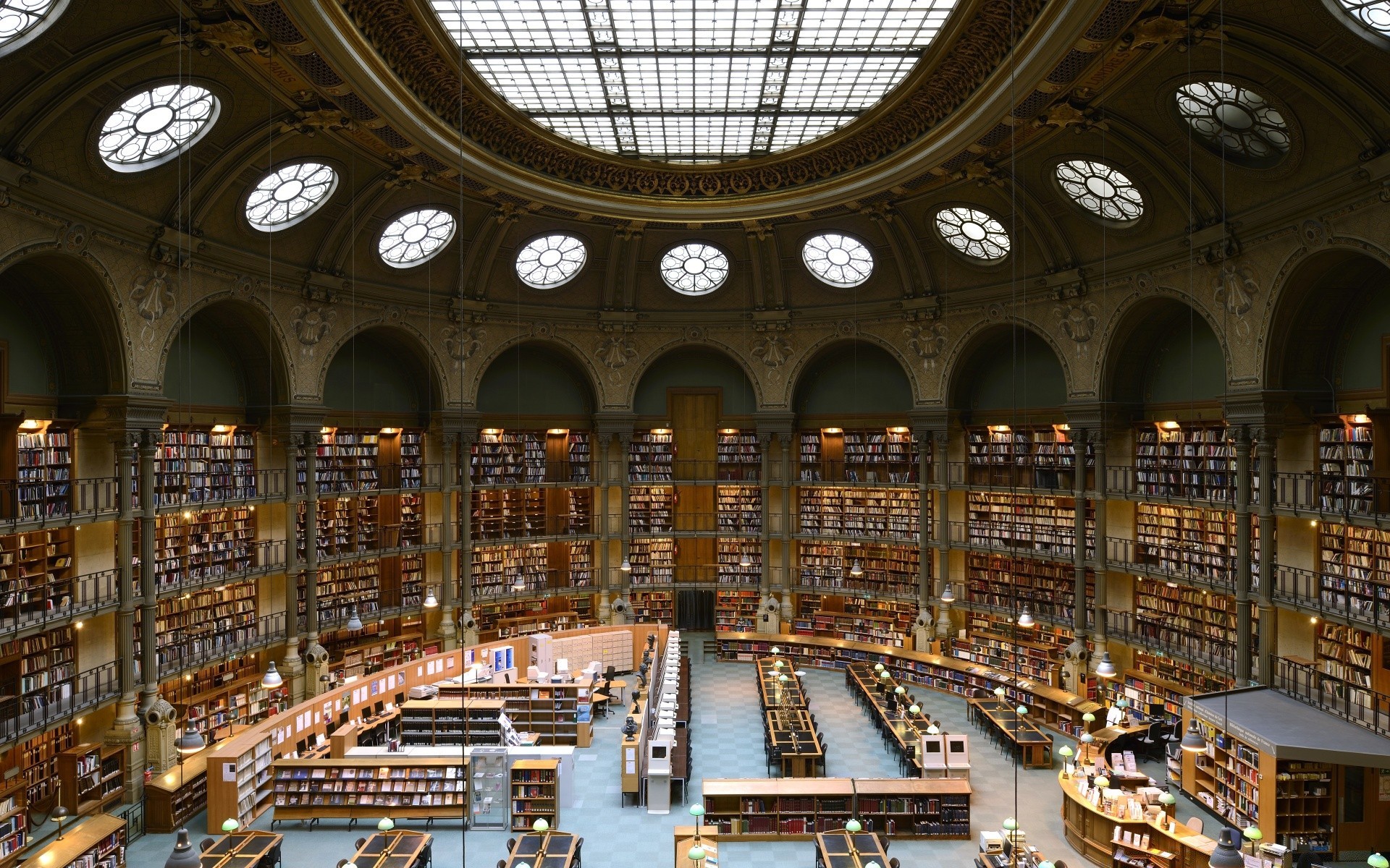Hermoso interior de una gran biblioteca