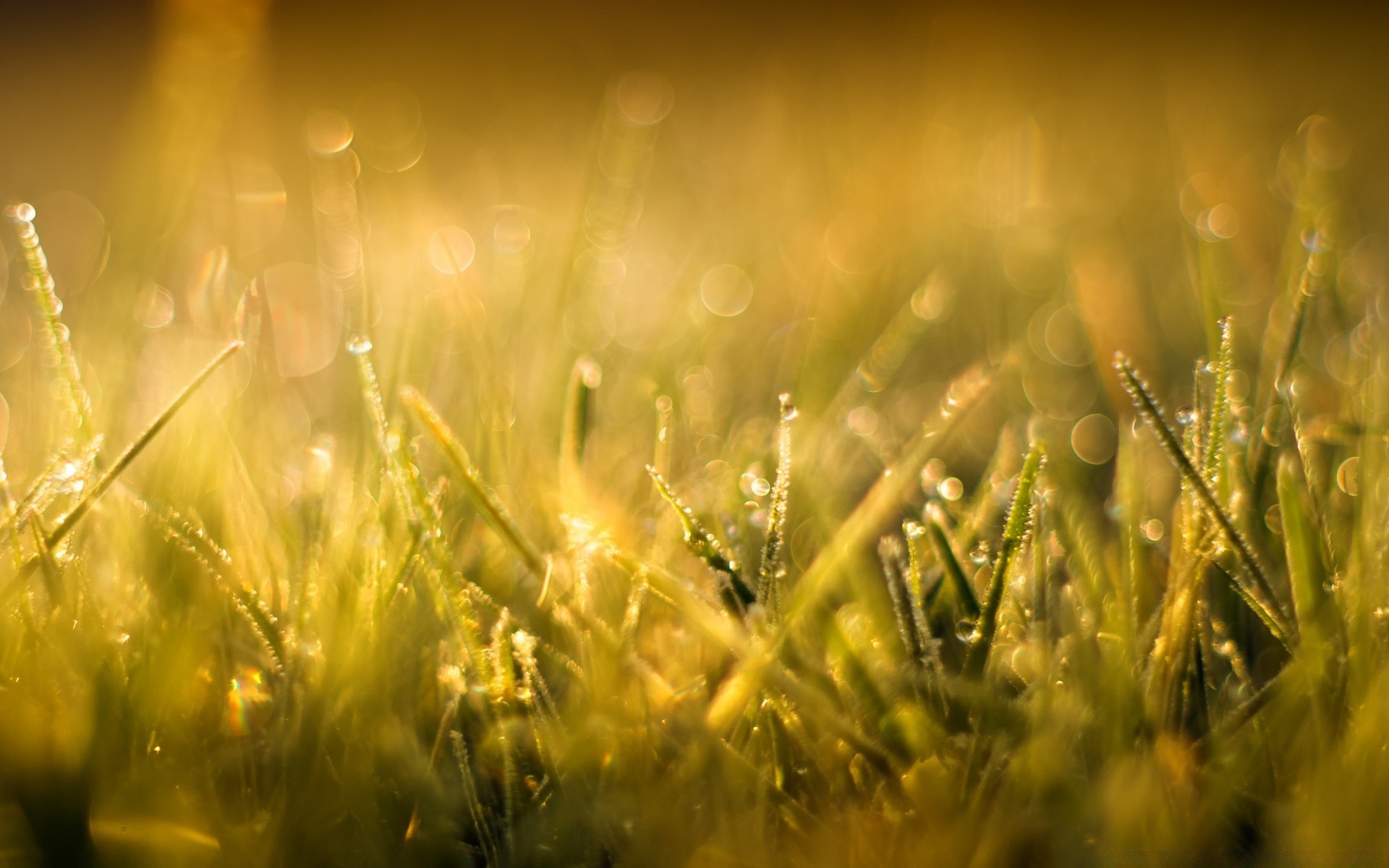 Gotas de agua brillantes sobre la hierba en tonos grises sobre un fondo borroso en