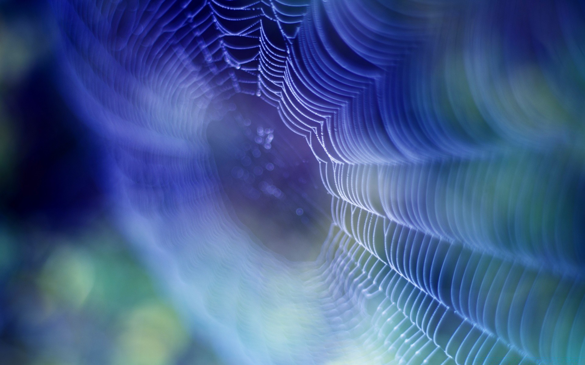 Imagen de una telaraña que sostiene las flores sobre un fondo oscuro