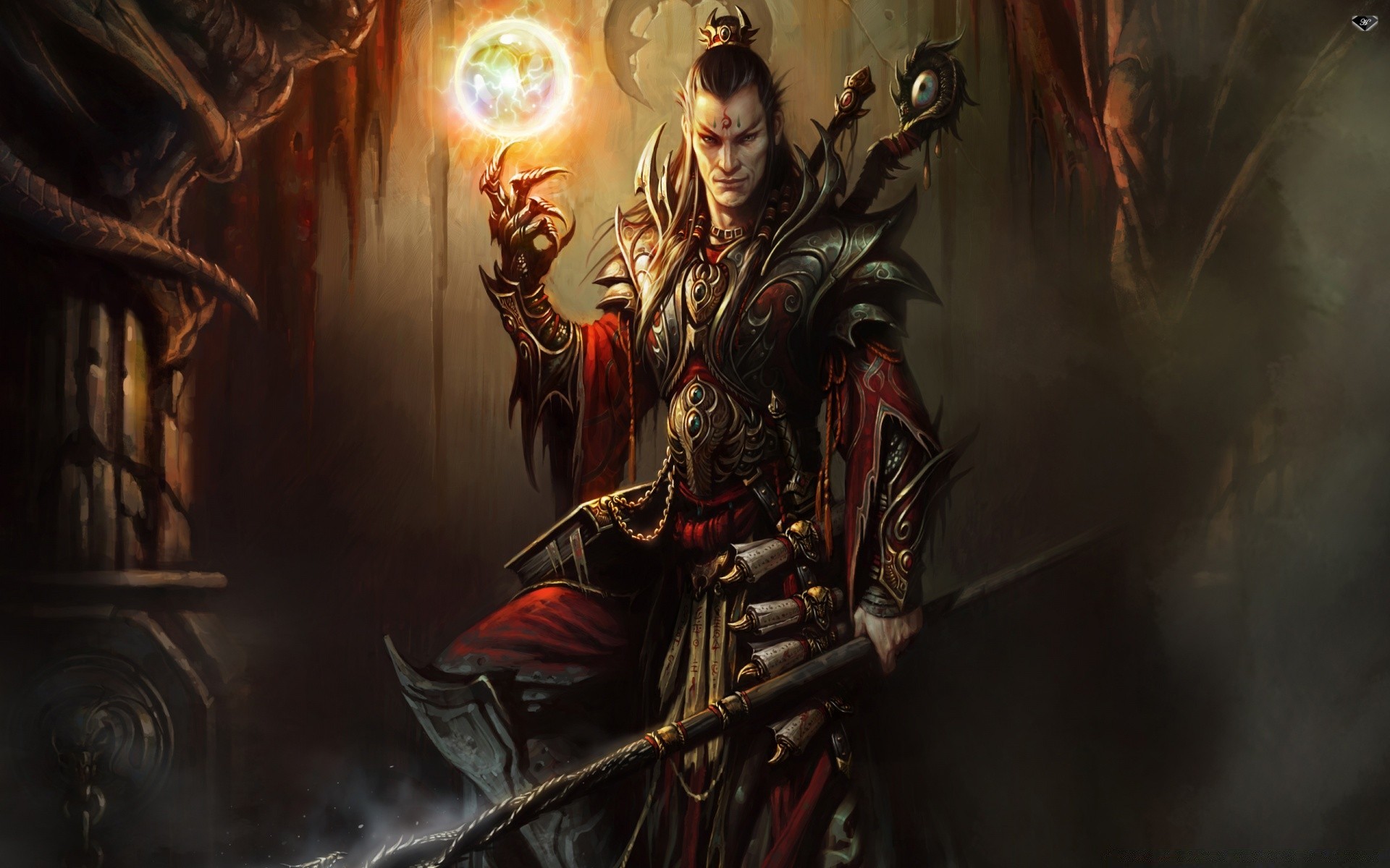 Héroe mágico con bola de cristal redonda