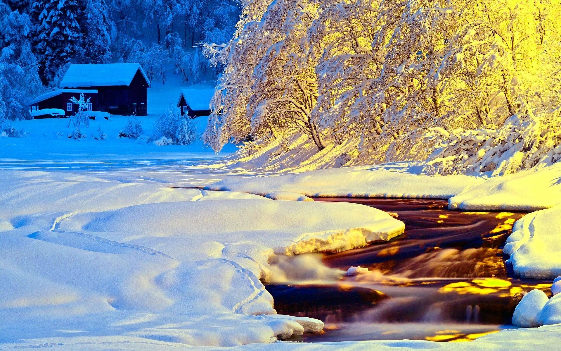 Paisaje de invierno. tiempo de nieve. cascada en invierno