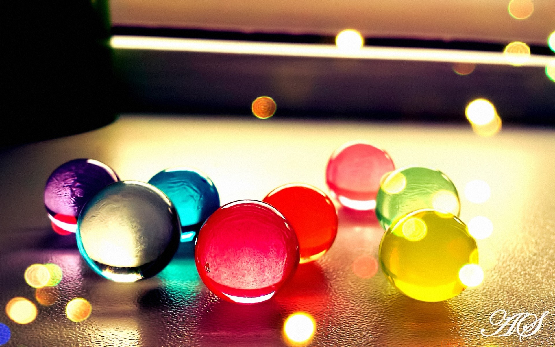 Burbujas de colores brillantes sobre un fondo borrosoBurbujas de colores brillantes sobre un fondo borroso