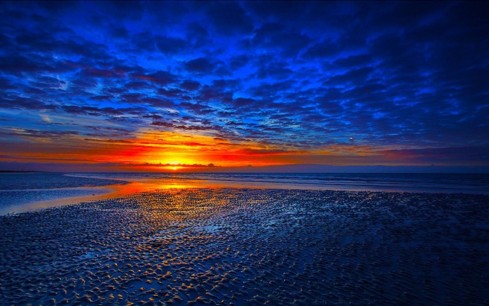 Cielo azul y mar y puesta de sol brillante