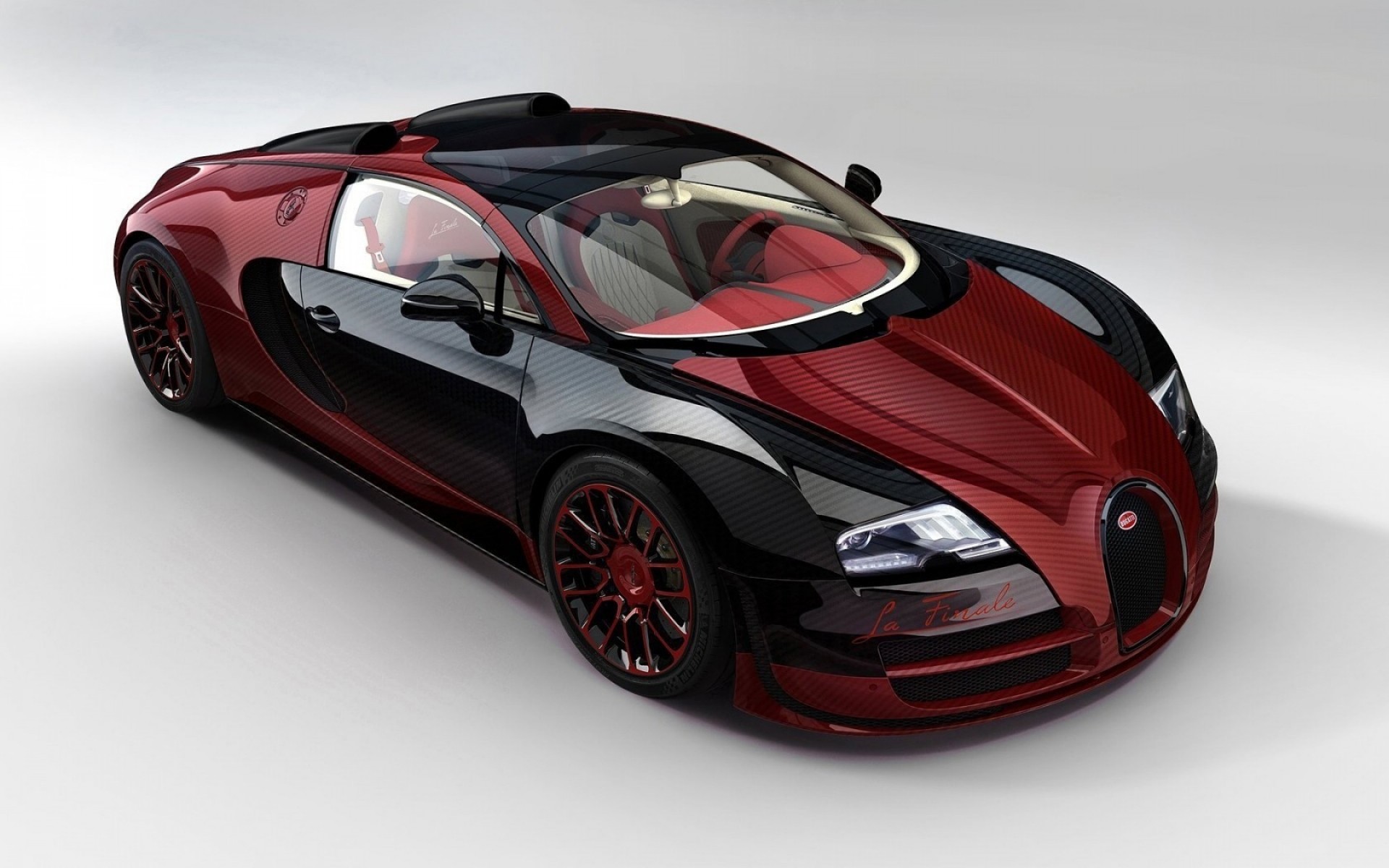 Un coche deportivo bugatti azul contra un fondo de palmeras