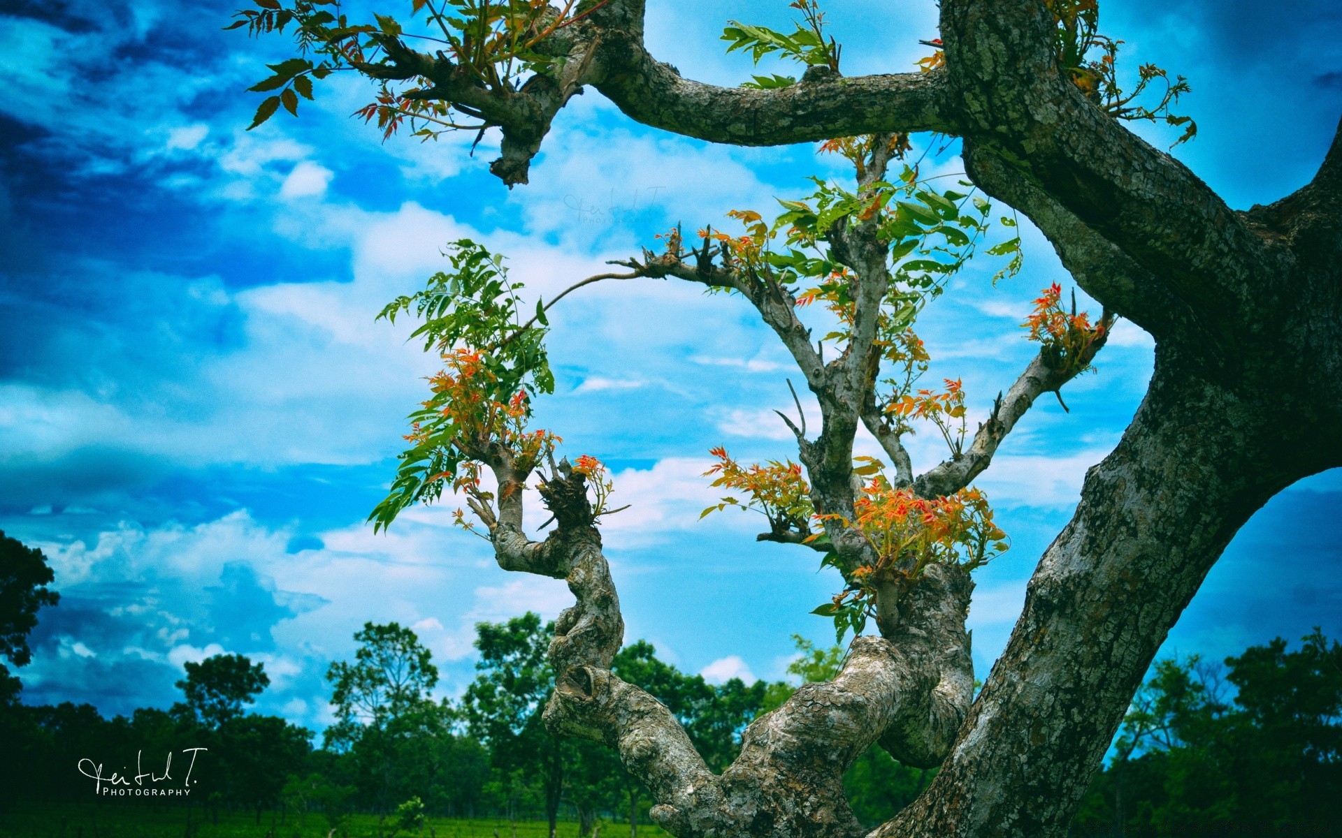 Cielo azul con nubes blancas sobre hierba verde brillante